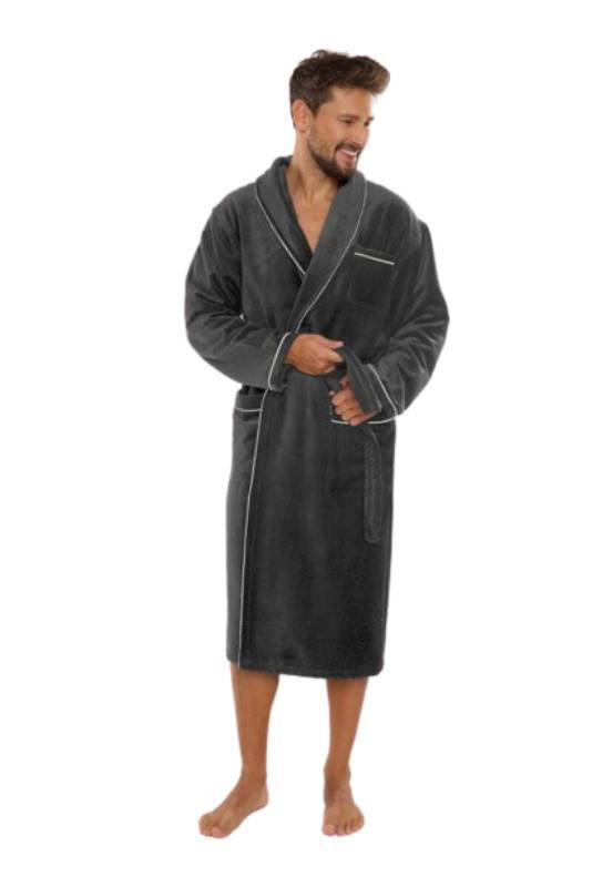 Elegancki grafitowy szlafrok męski frotte De Lafense Manuele 735