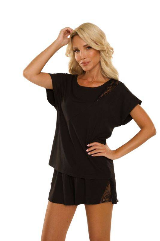 Luźna czarna piżama damska z krótkimi spodenkami De Lafense 738 Velar