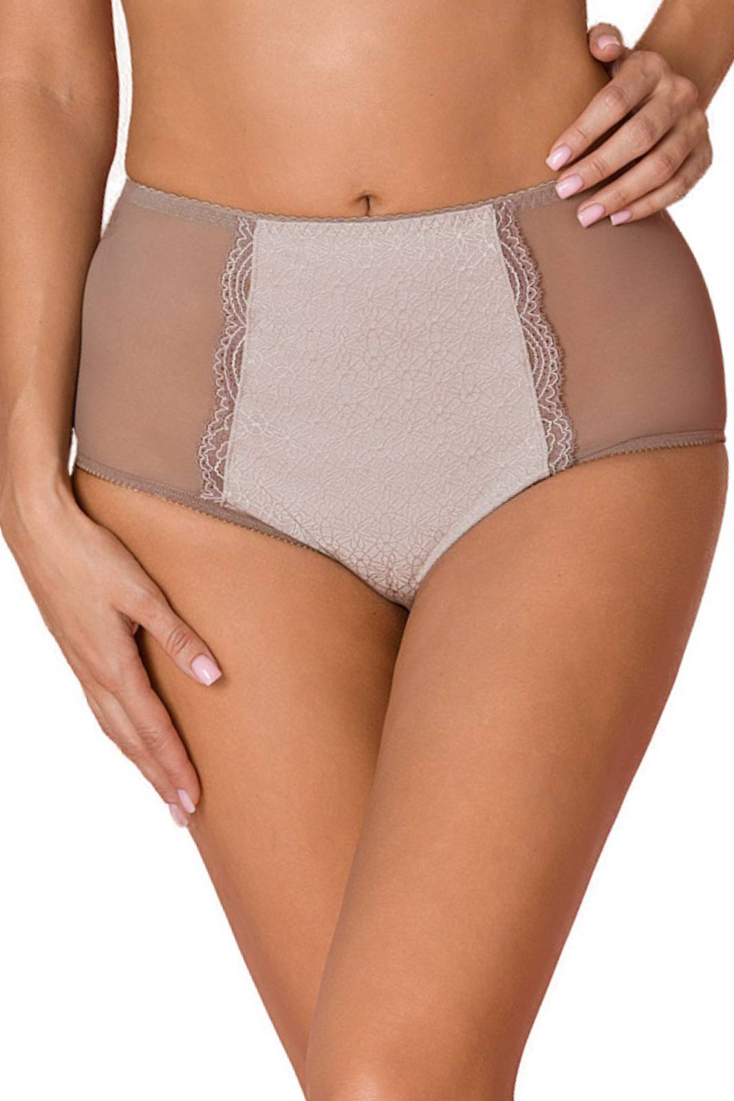 Wygodne figi w kolorze mokka. Z przodu dzianina z koronki, boki wykonane z tiulu. Tył wykonany z elastycznego tiulu. Model z wysokim stanem, dla kobiet które lubią wymodelować swoje atuty. Figi pozwalają ukryć drobne niedoskonałości dolnej części brzucha. Skład: 75% poliamid, 20% elastan, 3% poliester, 2% bawełna.Odkryj elegancję i komfort na co dzień z wysokimi figami VENA VF-454, które z pewnością staną się podstawowym elementem Twojej garderoby. Te wyjątkowe majtki damskie w kolorze brązowym łączą w sobie wysoką jakość oraz modny design, spełniając oczekiwania nawet najbardziej wymagających kobiet.
