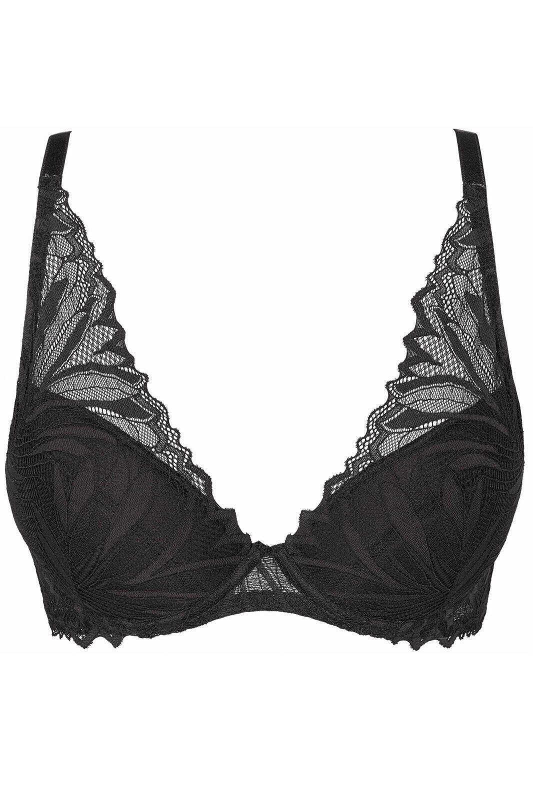 - Elegancki biustonosz Eclipse push up w czarnym kolorze polecany do głębszych dekoltów, z ozdobnie wyprowadzoną miseczką do ramiączek.