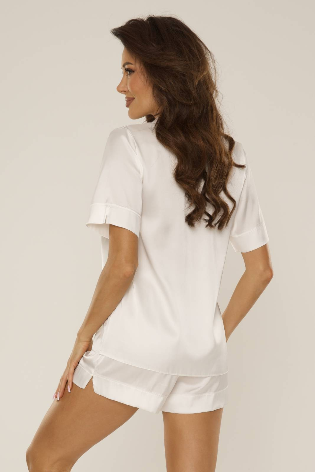 - Komplet do spania z rozpinaną koszulą i krótkimi szortami. Wykonana z materiału przypominającego satynę.