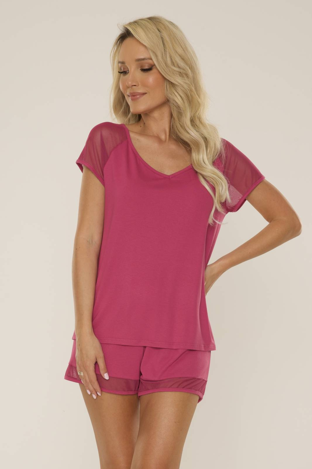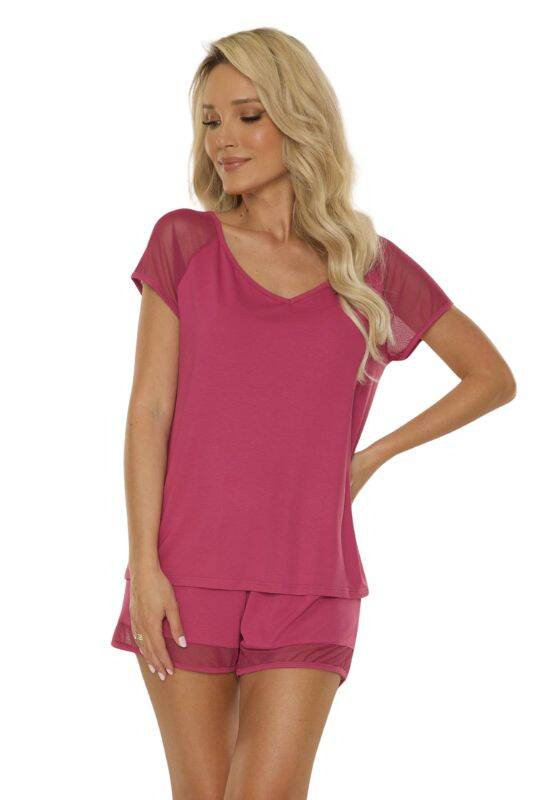Letnia piżama damska z krótkimi spodenkami De Lafense 766 Caramel fuksja