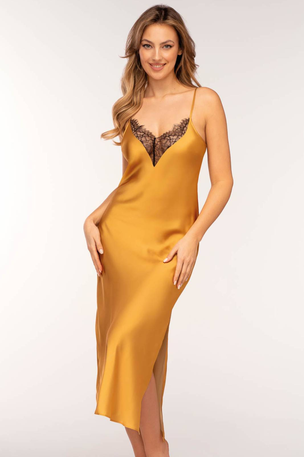 - Elegancka długa halka z rozcięciem po bokach. Model w modnym kolorze, z dodatkiem czarnej koronki.