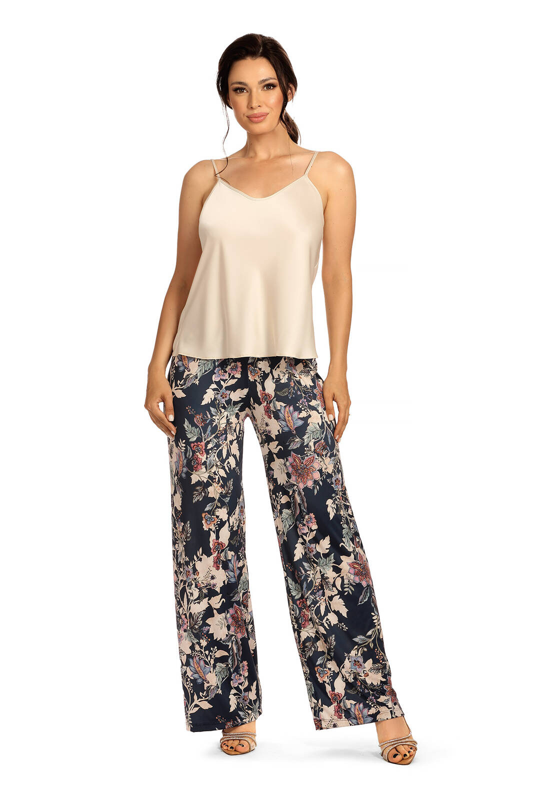 - Satynowa koszulka na ramiączkach w jasnym kolorze.