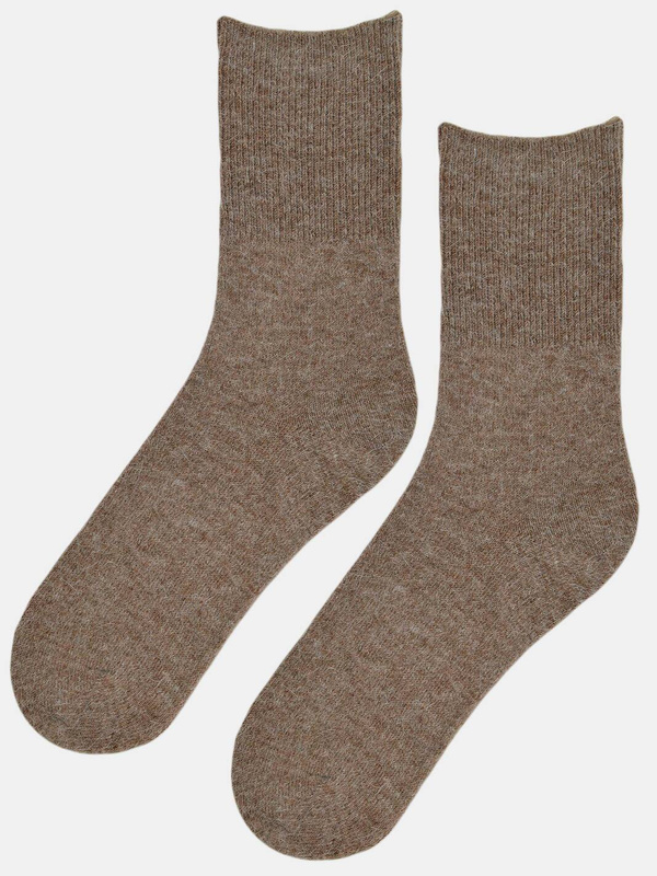 Bezuciskowe skarpety damskie z angorą, kolor beżowy - Noviti SB082-W-02