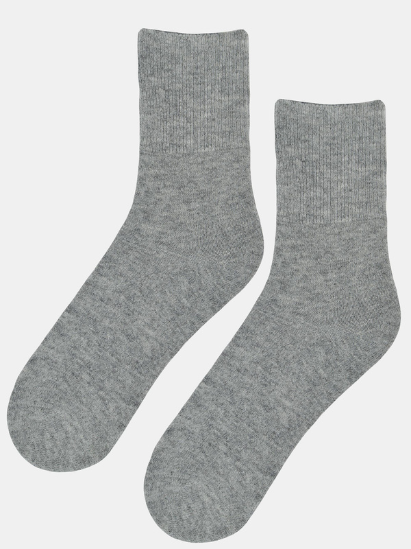 Bezuciskowe skarpety damskie z angorą, kolor jasny szary melanż - Noviti SB082-W-03