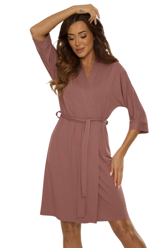Elegancki krótki szlafrok De Lafense Fanny 342 S-2XL w kolorze pudrowej mokki