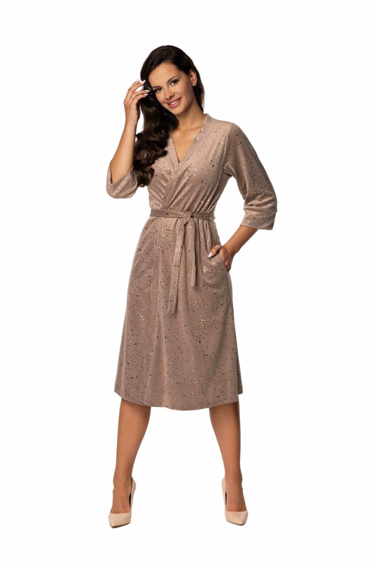 - Stylowy design: Beżowy kolor w połączeniu ze złotymi dodatkami nadaje szlafrokowi elegancji, sprawiając, że poczujesz się wyjątkowo w każdej sytuacji.