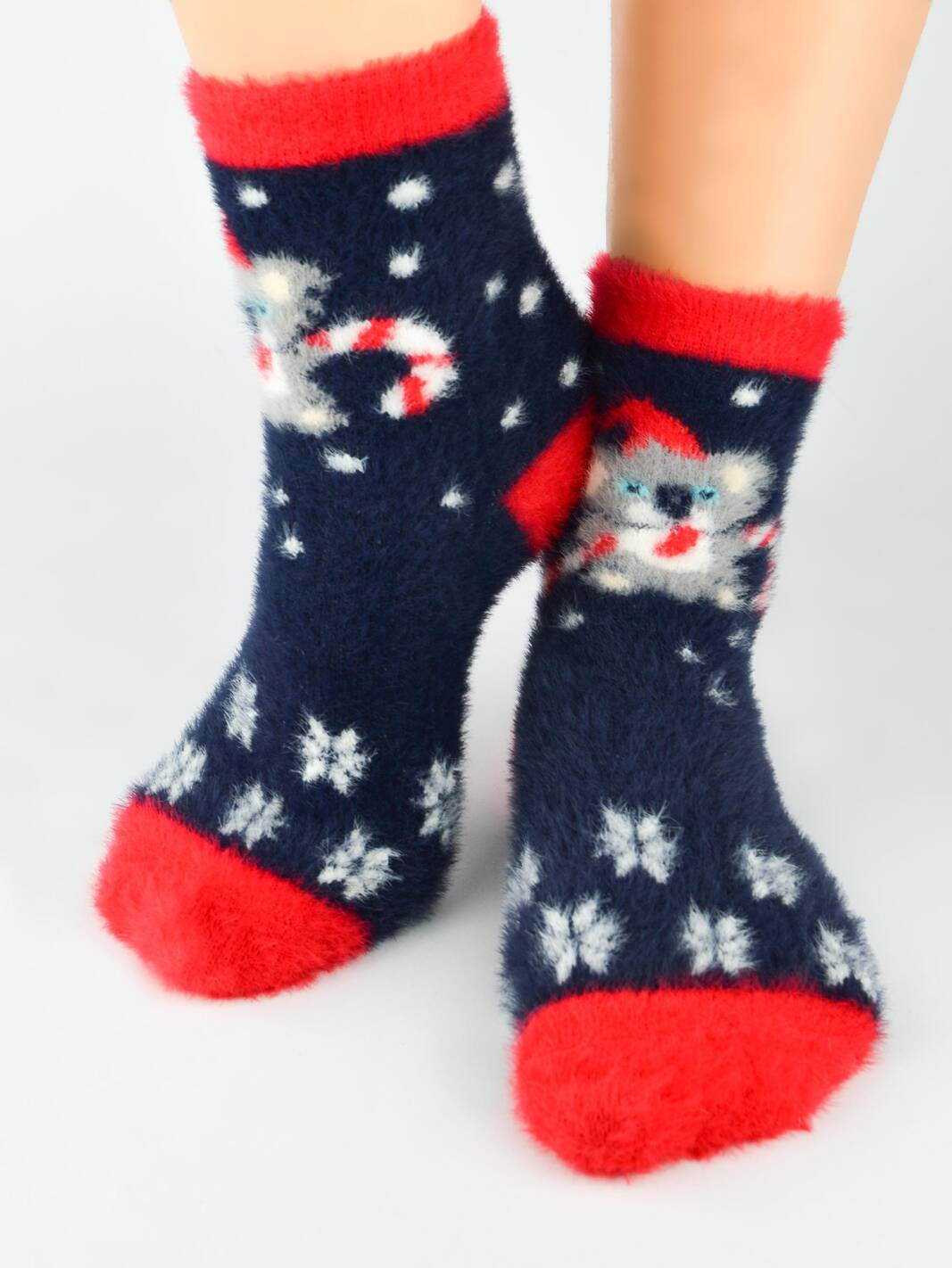 Skarpety puchate damskie XMAS koala granat - Noviti