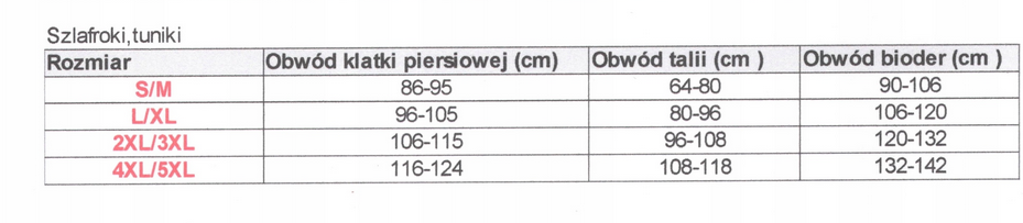 Rozmiar | Obwód klatki piersiowej [cm] | Obwód w talii [cm] | Obwód bioder [cm] |