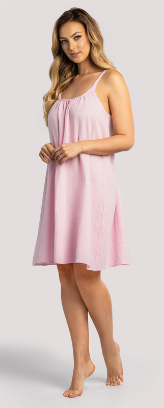 - Lekka halka nocna Lotus od unikat w cukierkowym odcieniu różu. Koszulka na ramiączkach o bardzo luźnym kroju, uszyta z przewiewnej bawełny.