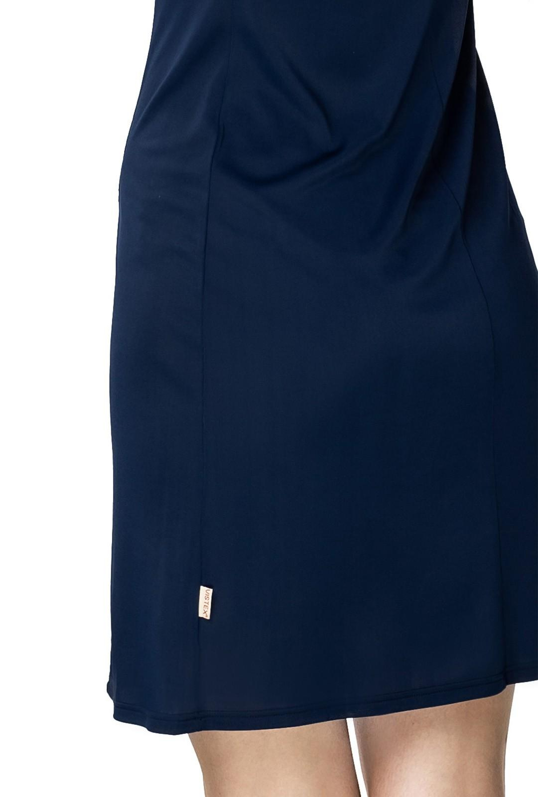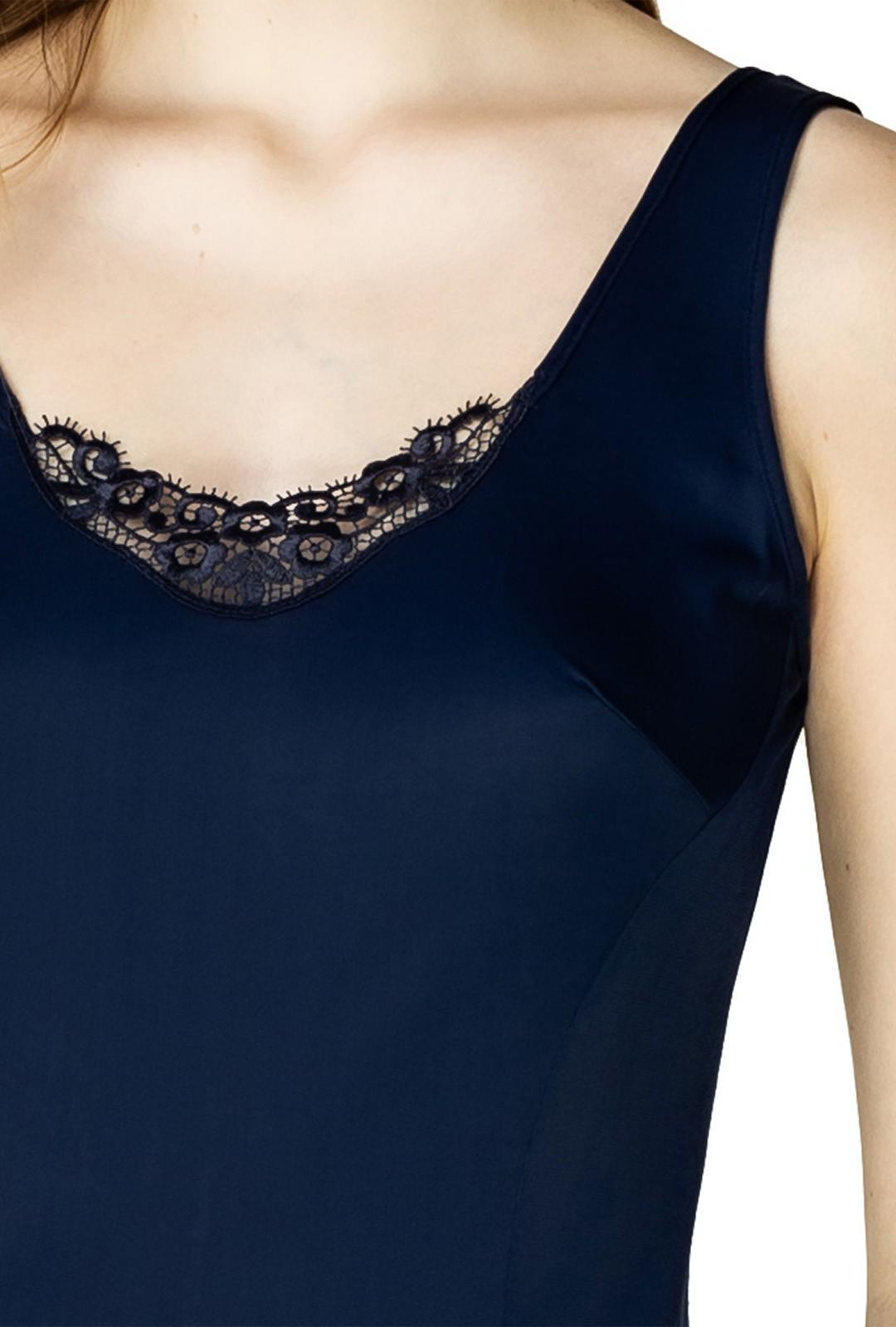 Granatowa halka Mewa 4127 Amelia z jedwabiu Vistex z ozdobnym dekoltem