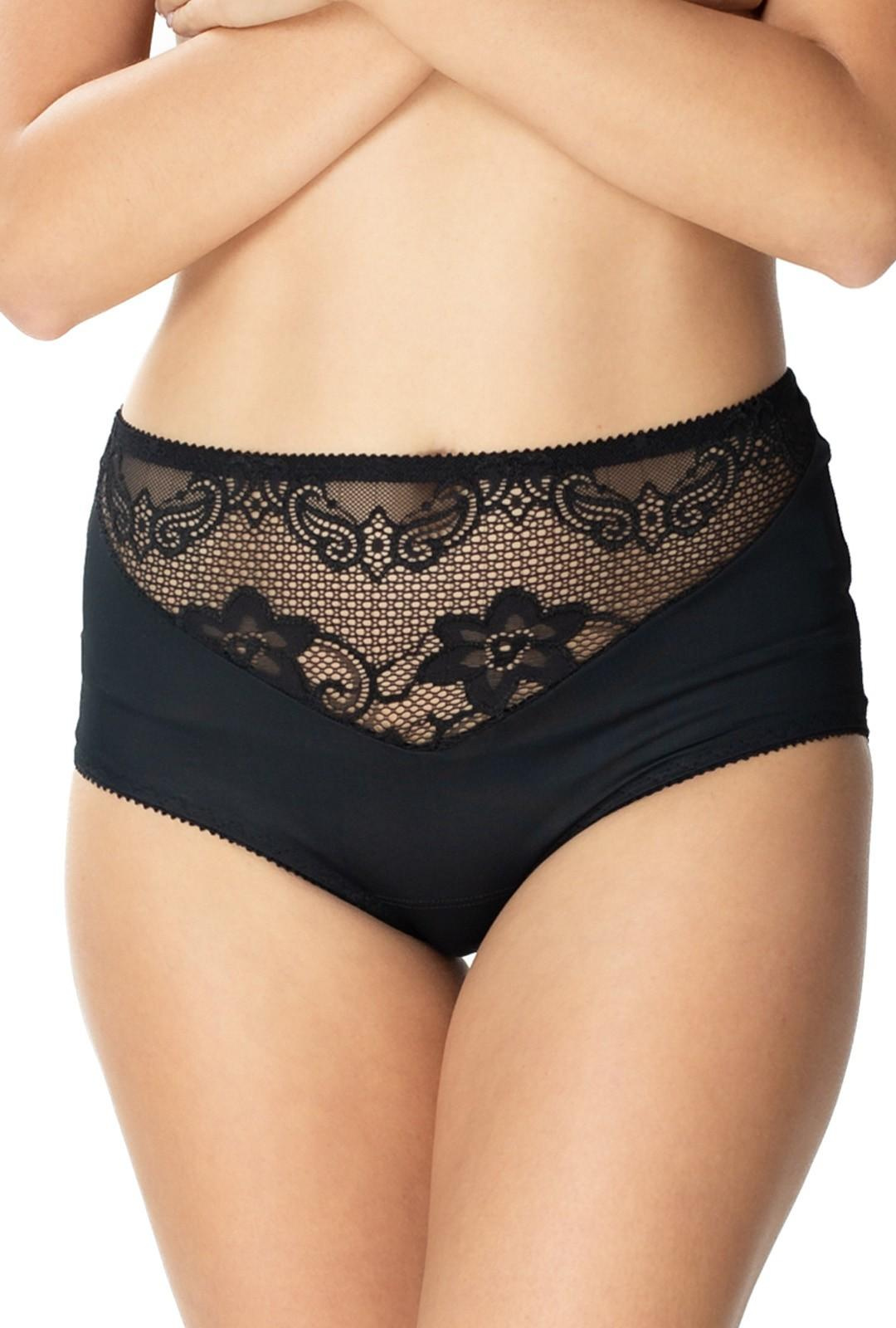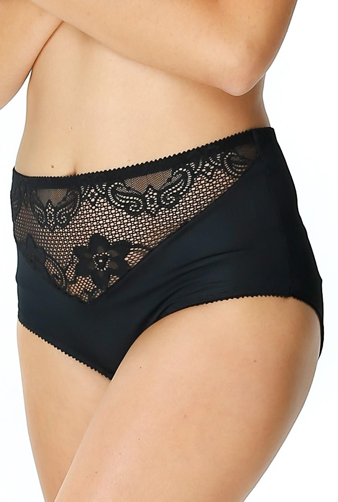 Figi damskie Liza wysoki stan z koronką kol. czarny - Mewa