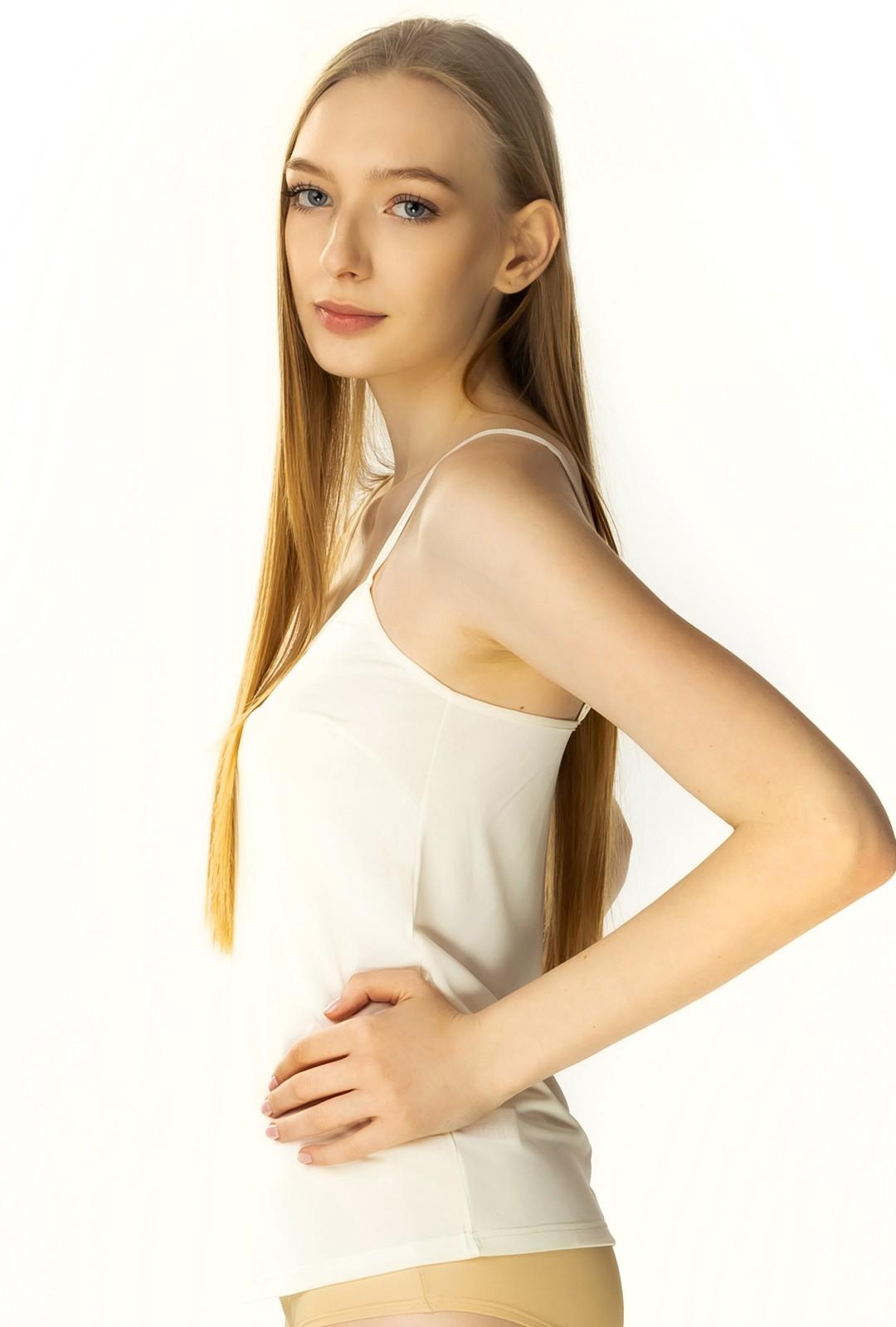Odkryj nową definicję komfortu i elegancjiprosta koszulką damską Ofelia na ramiączkach 6117 ecru