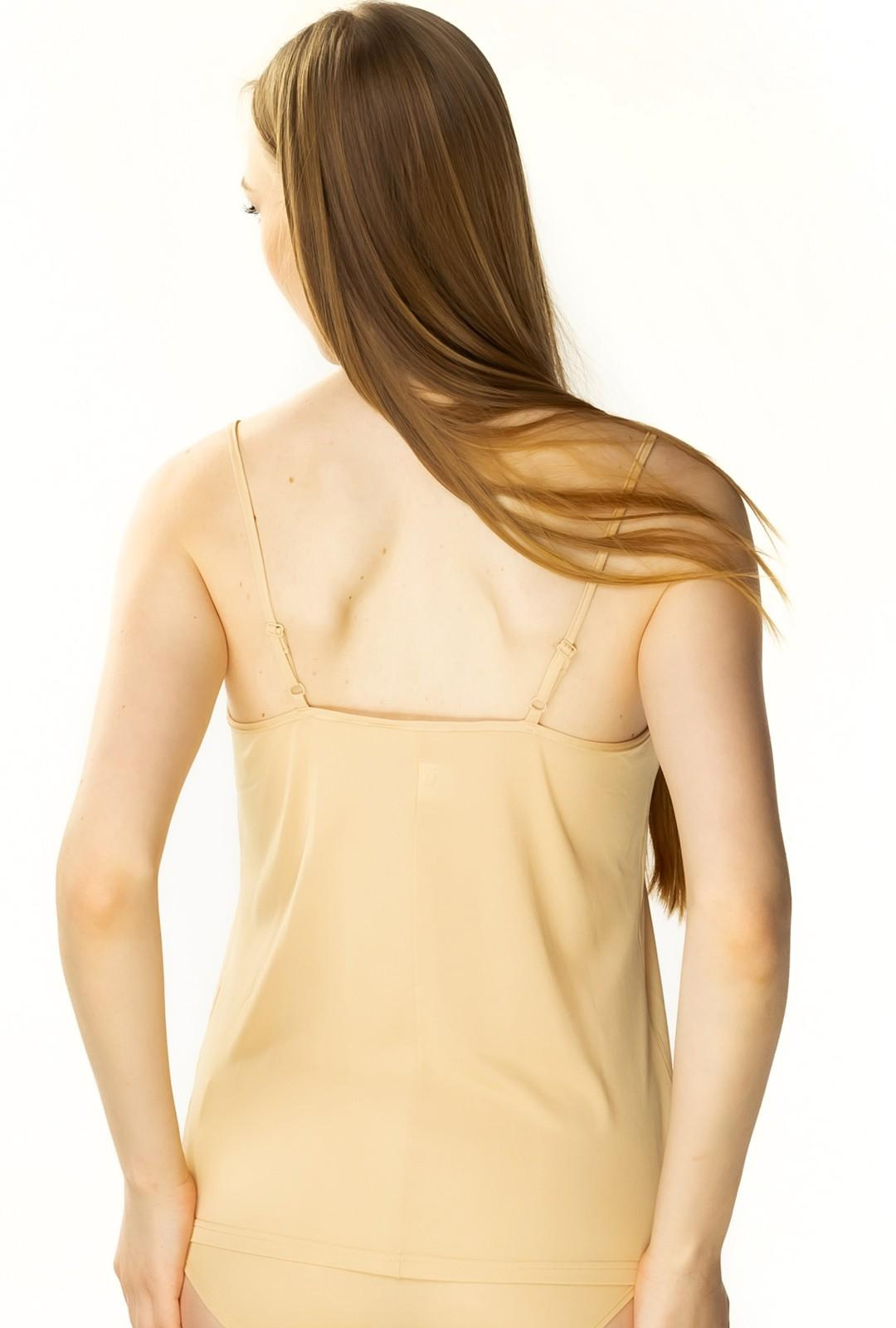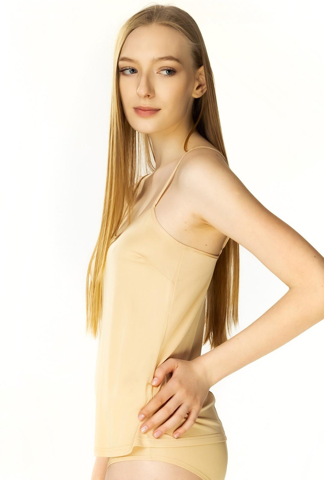 Prosta koszulka damska Ofelia na ramiączkach 6117 beżowy - Mewa