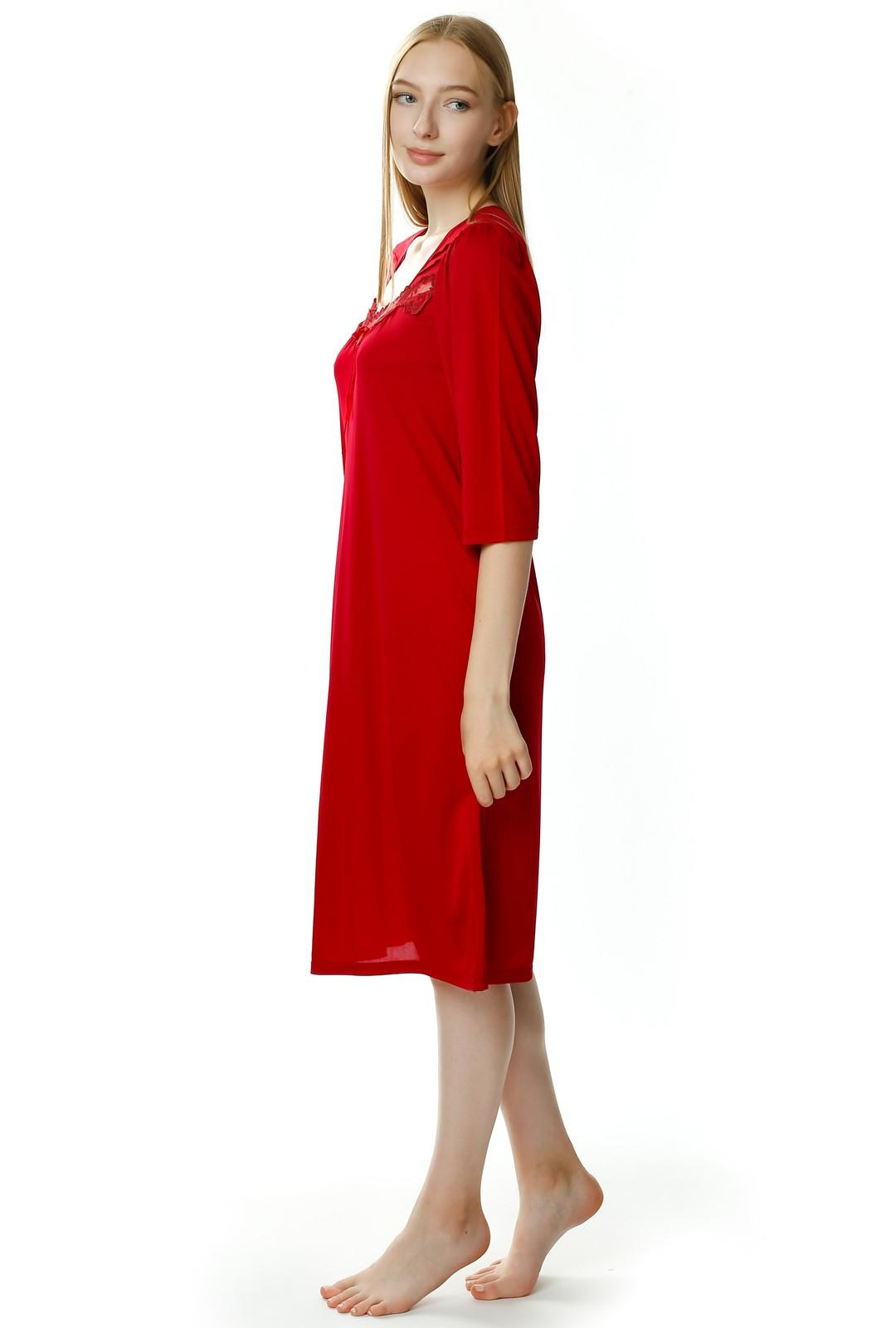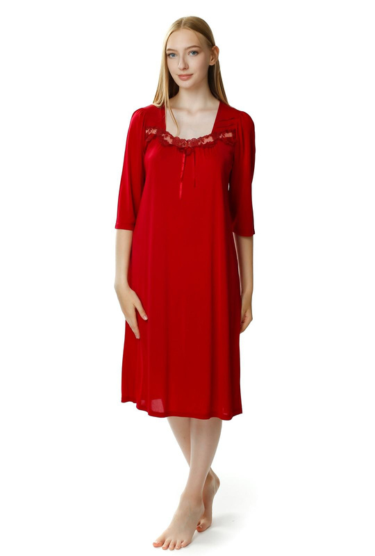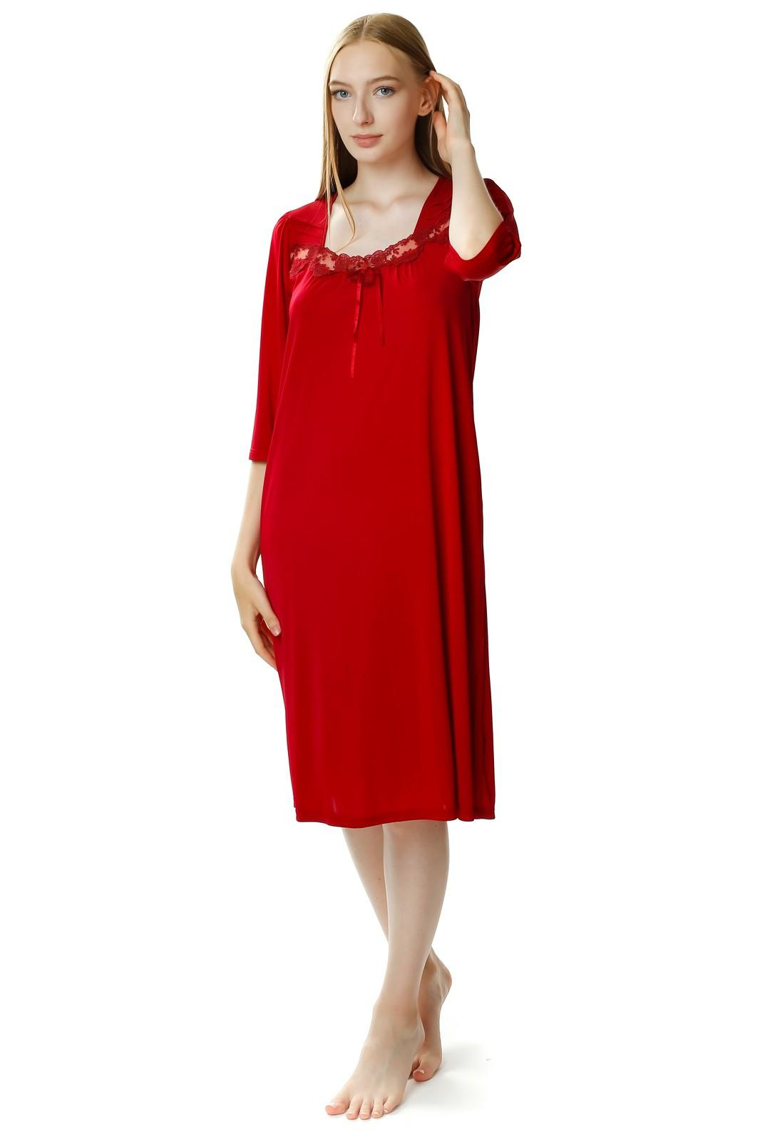 Damska koszula nocna Melisa rękaw 3/4 haft 3942 burgundowy - Mewa
