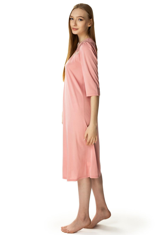- Koszula nocna Diana z rękawem długości 3/4 z wysokiej jakości jedwabiu wiskozowego. Długość sięgającej za kolano, idealnie sprawdzi się o każdej porze roku. Luźny krój oraz miękki i delikatny w dotyku materiał dostarczy wygody i komfortu podczas snu.