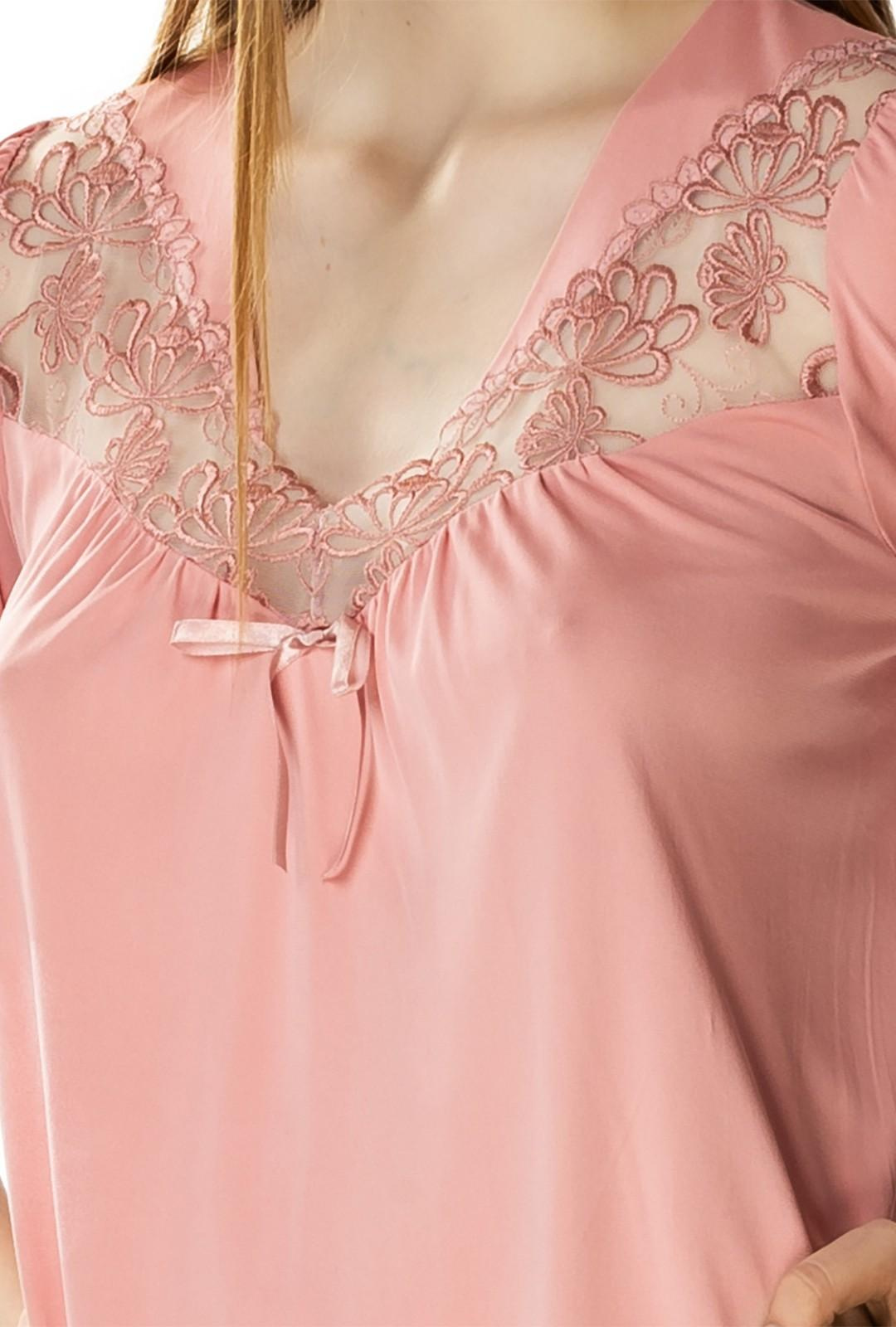 Długa koszula nocna Diana z ładnym dekoltem ciemny róż - Mewa