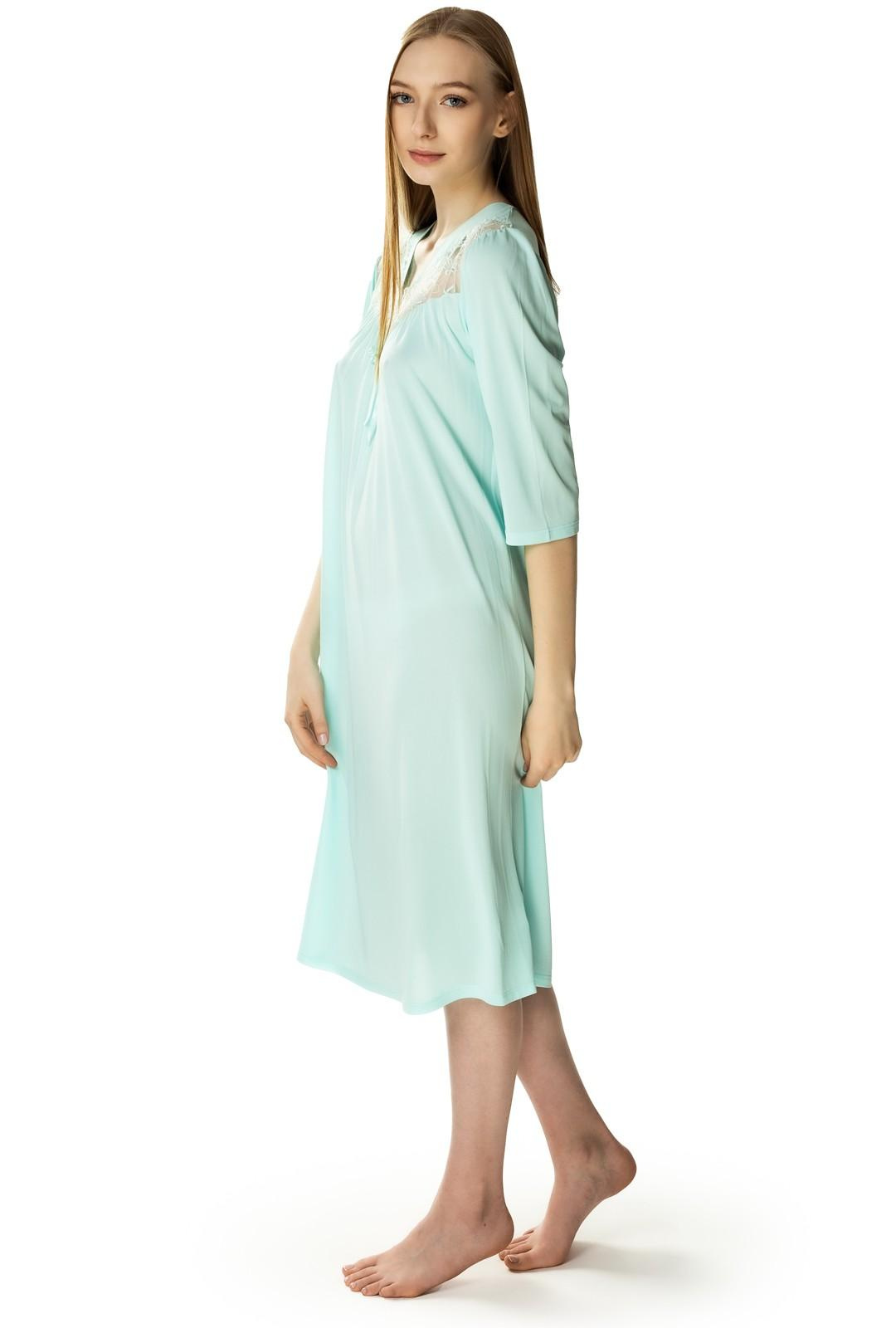 Długa koszula nocna Diana z ładnym dekoltem mięta - Mewa
