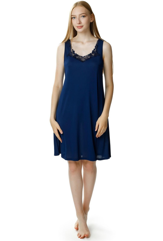 Koszulka damska nocna AURORA z ładnym dekoltem 6385 granatowy - Mewa