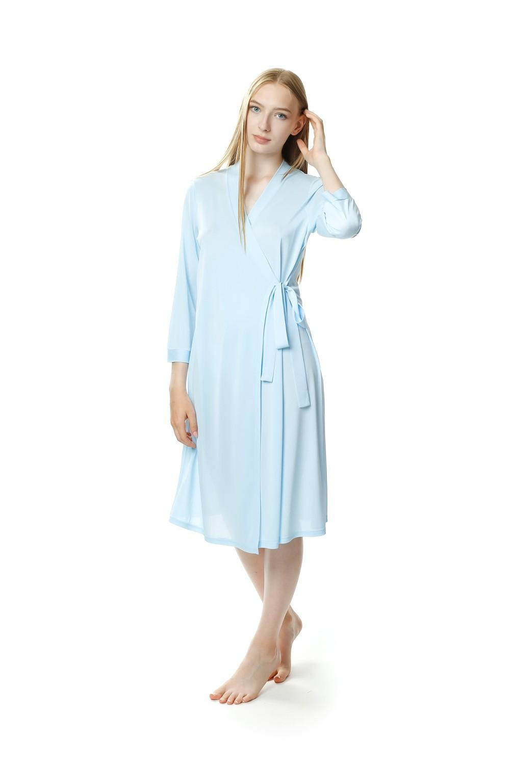 Elegancki peniuar damski Wiktoria 6386 niebieski - Mewa