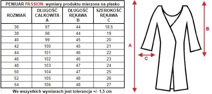 - Duże rozmiary: Peniuar dostępny jest w różnych rozmiarach, co sprawia, że każda kobieta może znaleźć idealny dla siebie model, nie rezygnując przy tym z elegancji i modnego wyglądu.