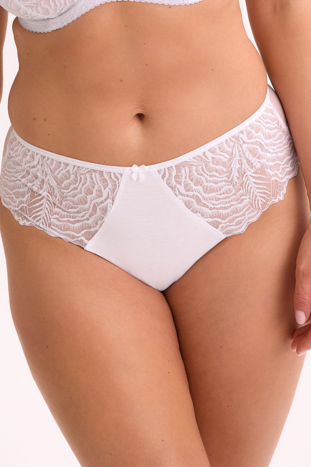 - Figi brazilian łączą w sobie elastyczną koronkę oraz tiul, które subtelnie podkreślają sylwetkę. Koronka zdobi boki przodu, tył oraz nogawki, nadając bieliźnie wyjątkowego charakteru.