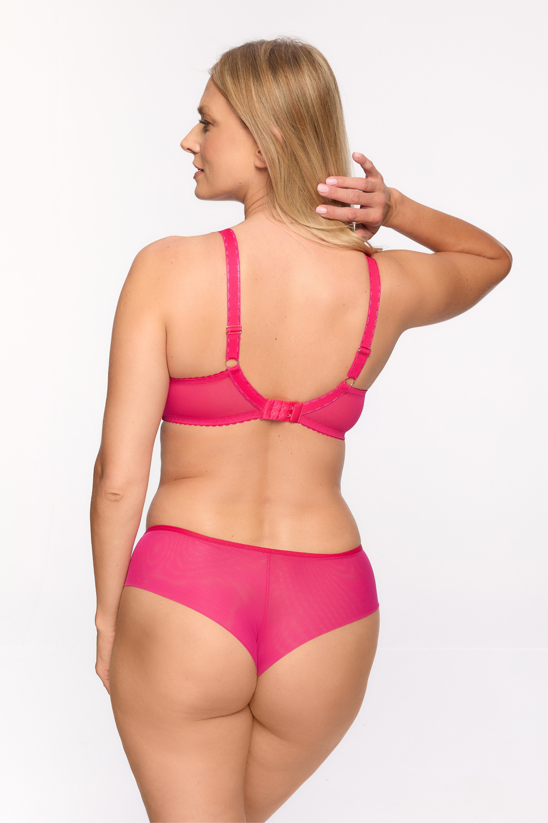 Biustonosz Soft Cintia 1294 wykonany jest z wysokiej jakości materiałów: 56% poliamidu, 30% poliestru oraz 14% elastanu, co zapewnia nie tylko trwałość, ale również elastyczność i wygodę noszenia. Dzięki temu biustonosz pięknie układa się na ciele, niezależnie od kształtu sylwetki. Elastyczność materiału sprawia, że możesz cieszyć się pełną swobodą ruchów przez cały dzień.