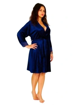 - Cienki krótki szlafrok De Lafense MILAGROS 457. Damski szlafroczek wykonany z wysokiej jakości weluru, miły w dotyku, dobrze układający się na ciele. Wiązany w pasie, rękaw 3/4. Stylowa koronka przy rękawach.