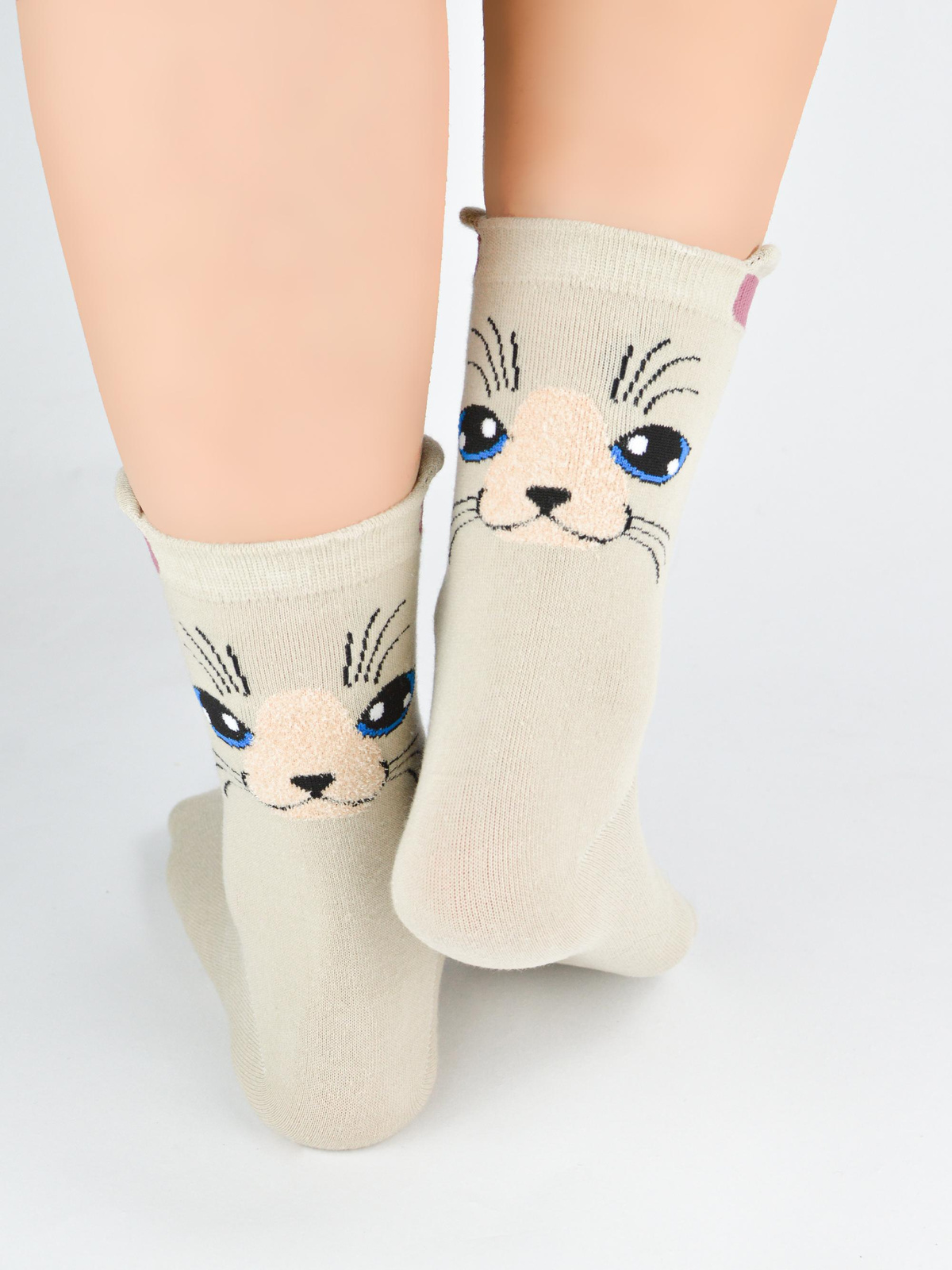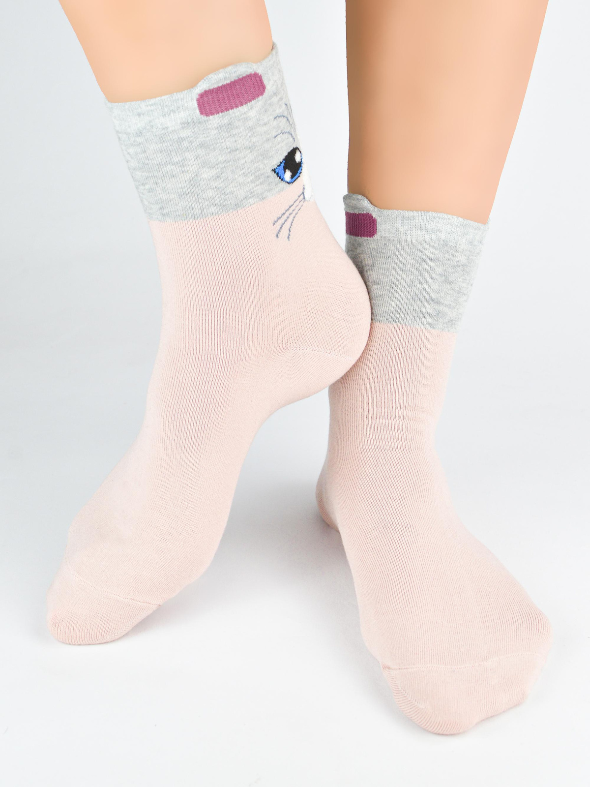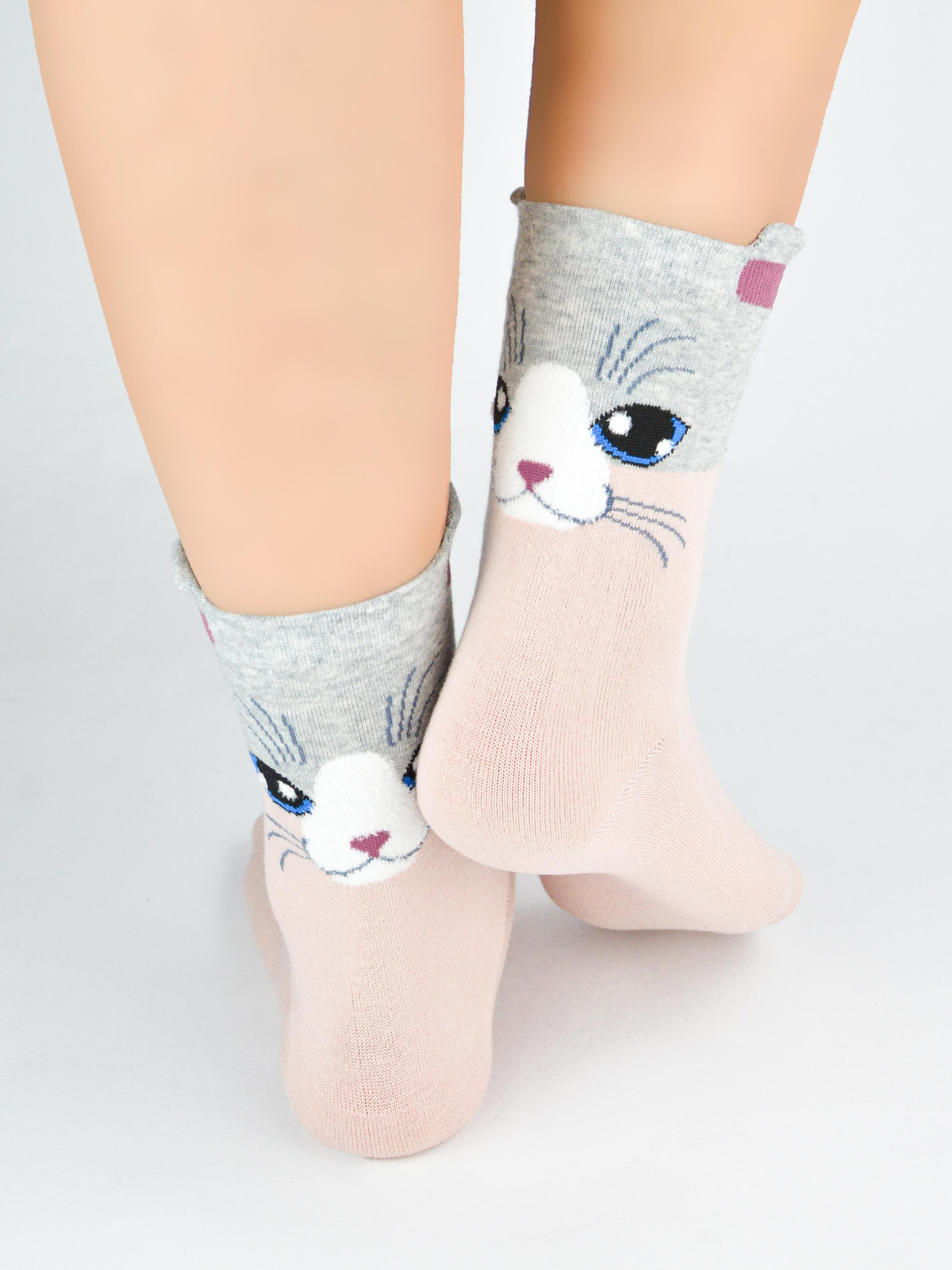 Skarpety bawełniane kot buźka SB156 mix - Noviti