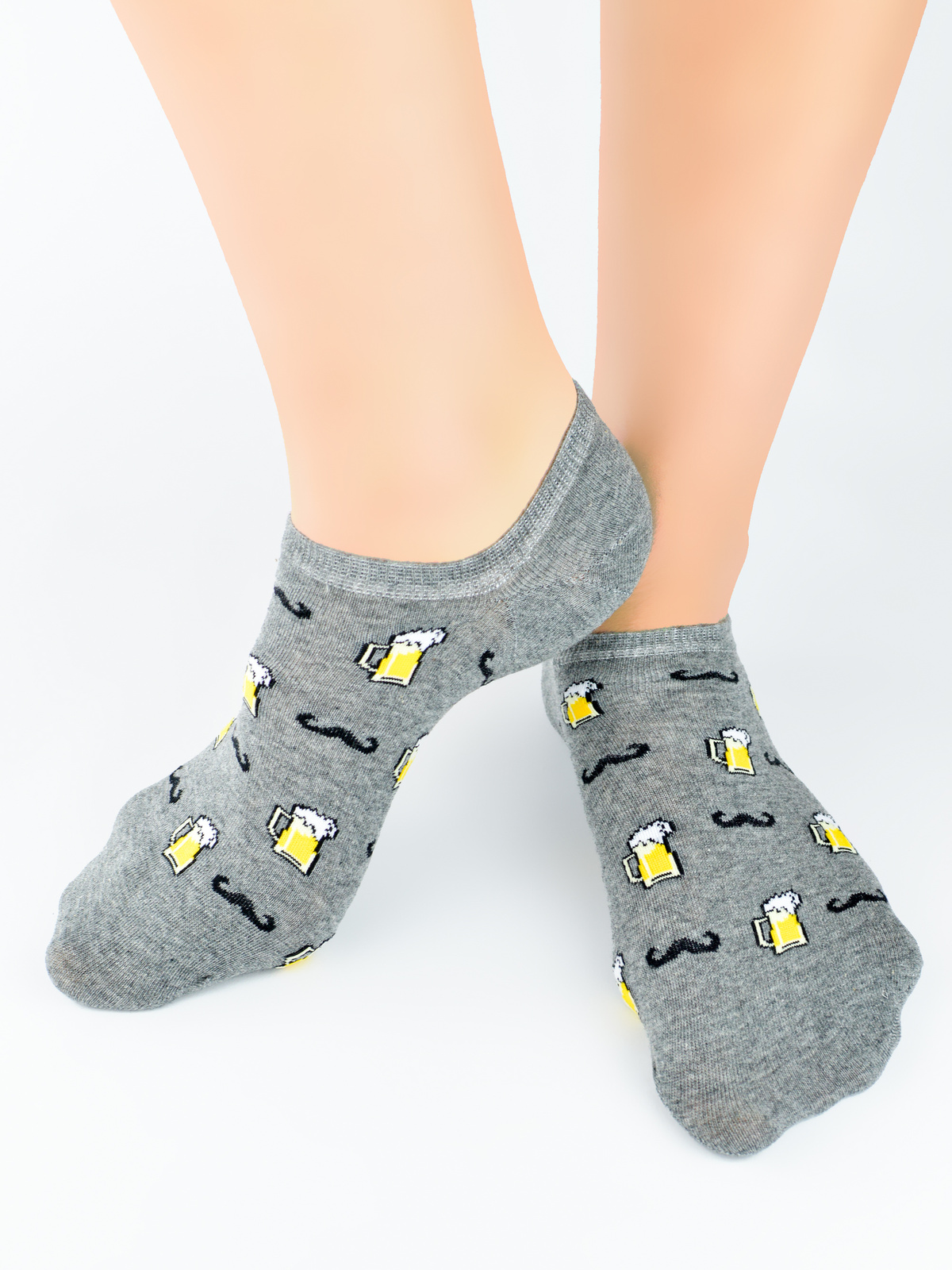 Szare męskie stopki ze wzorem w kufle piwa Noviti ST002 M03