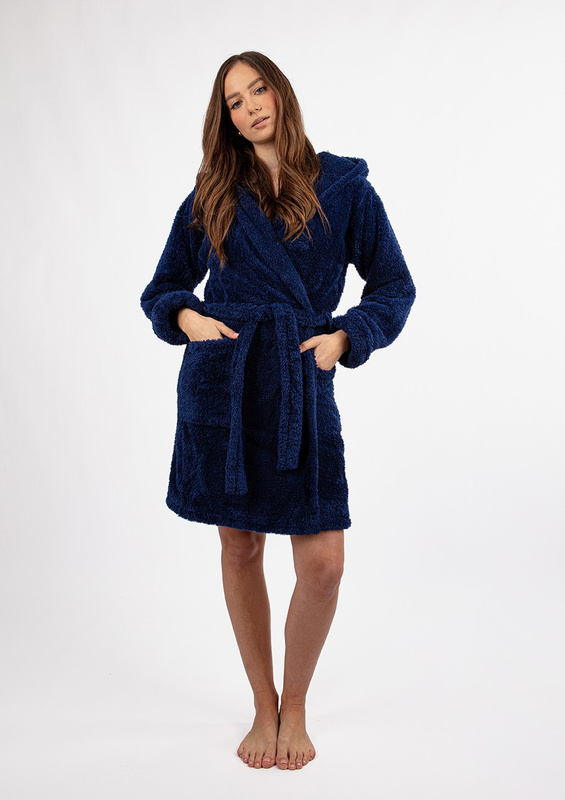 - Puchaty szlafroczek od marki Dkaren. Niesamowicie miękki i delikatny w dotyku. Przyjazny dla skóry. Posiada dwie pokaźne kieszenie oraz kaptur. Dostępny w wielu wariantach kolorystycznych.