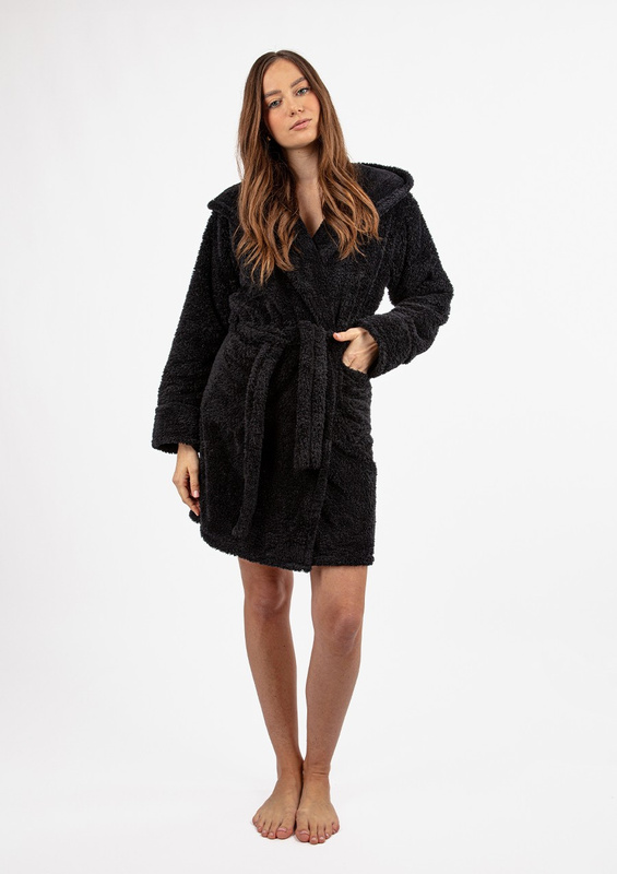 Puchaty szlafrok/ podomka DIANA- czarny Dkaren