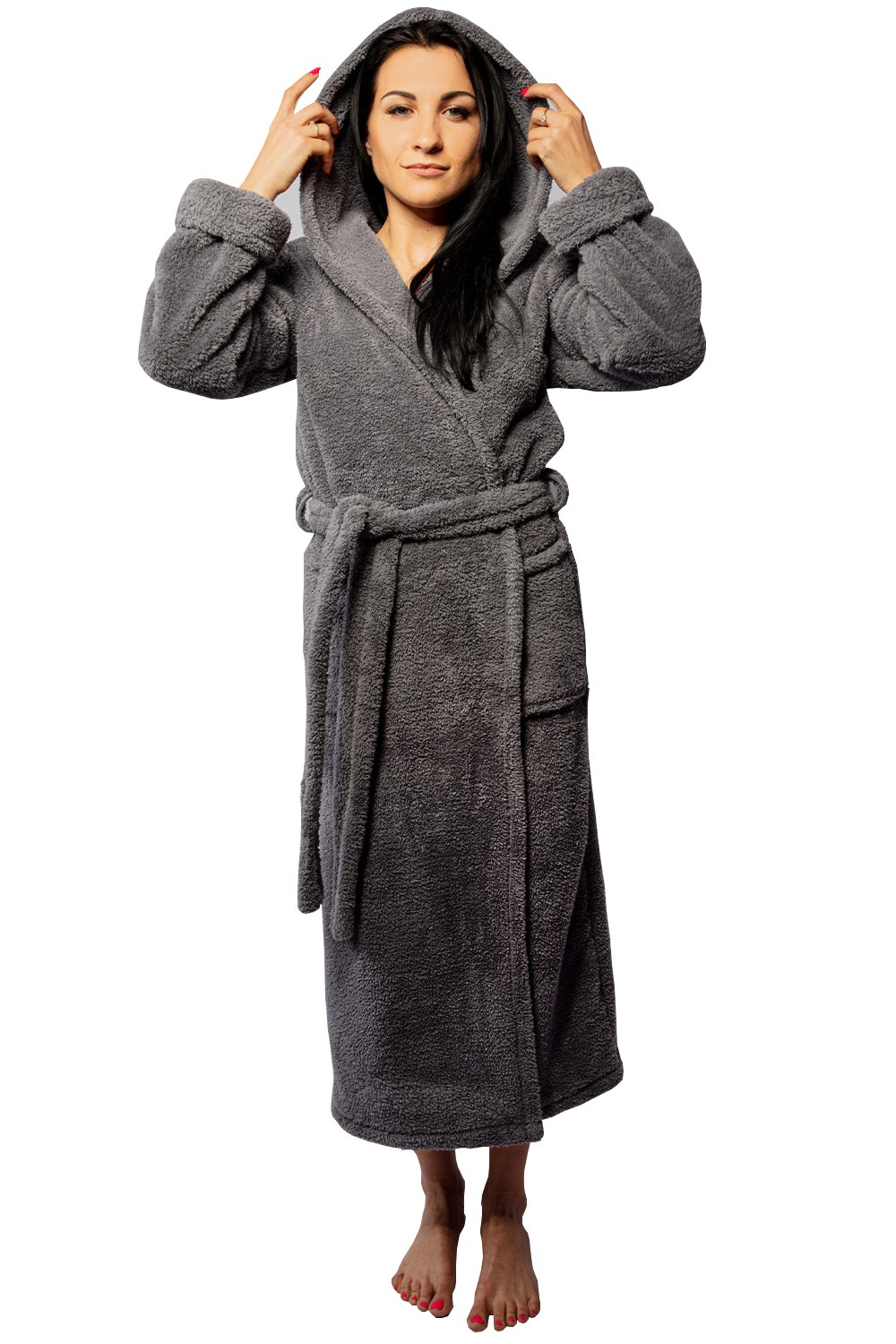 - Funkcjonalność: Szlafrok jest długi, z kapturem oraz praktycznymi kieszeniami, co sprawia, że jest nie tylko estetyczny, ale i bardzo funkcjonalny.