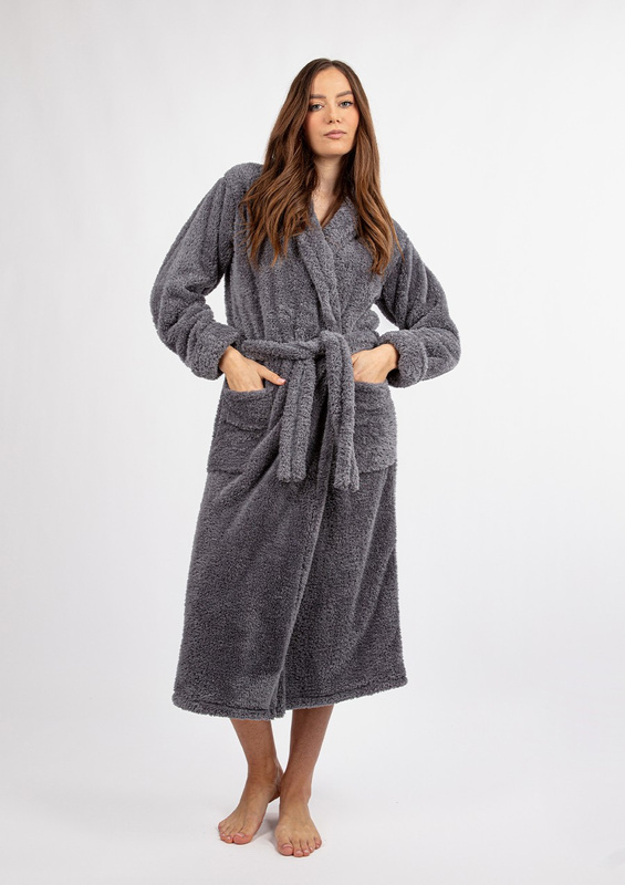 Puchaty szlafrok/ podomka ELIZA DŁUGA-szary - Dkaren