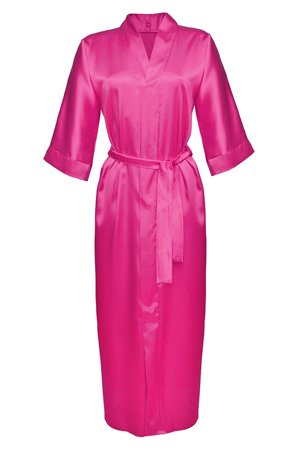 - Elegancka satynowa podomka, wiązana w pasie satynowym paskiem. Rękawki kimonowe, długość do łydki.