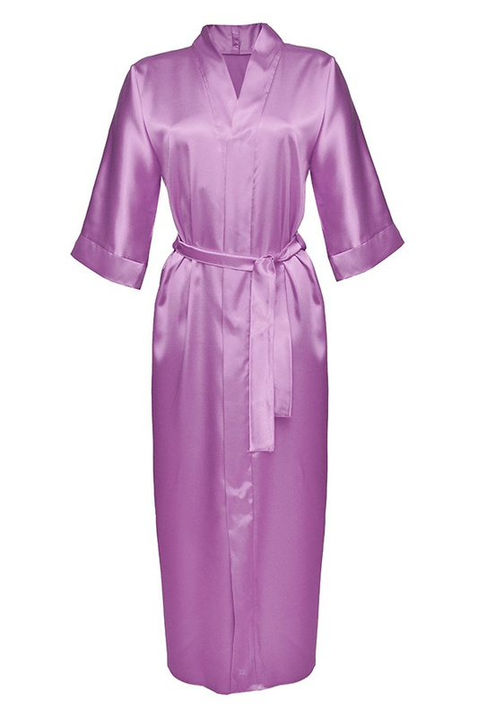 Długi satynowy szlafrok 130 wrzos - Dkaren