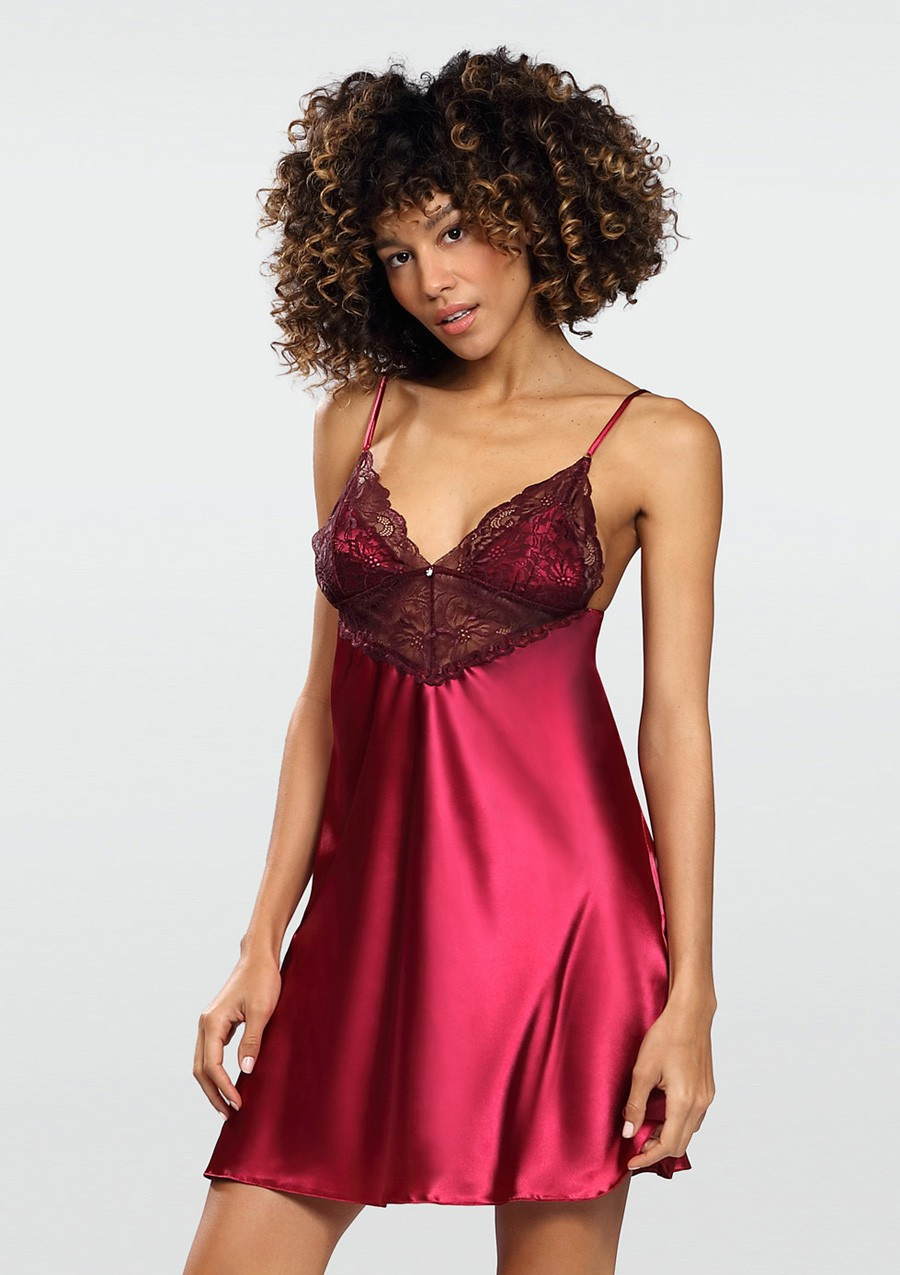 Koszulka nocna Dkaren to idealny wybór na intymny wieczór we dwoje. Wykonana z luksusowej satyny, koszulka nocna posiada delikatne koronkowe wstawki, które sprawiają, że jest ona niezwykle czarująca. Z pewnością jej krój sprawi, że poczujesz się pięknie i uwodzicielsko. Bordowa bielizna nocna to kwintesencja seksapilu i kobiecości. Ten gorący odcień rozpali zmysły Twojego partnera. Szukasz czegoś specjalnego na romantyczny wieczór? Masz rocznicę związku lub zaplanowaną randkę z partnerem? Sprawdź naszą zmysłową i kobiecą koszulę nocną! Satynowa koszulka wykończona koronkową wstawką, ta halka na pewno zrobi wrażenie na Nim. Z jej seksownym i uwodzicielskim stylem, będziesz nie do odparcia dla swojego partnera. Zamów swoją już dziś! Jak prać i prasować? Taki materiał najlepiej prać ręcznie w temperaturze 30°C. Proszę nie chlorować, nie czyścić chemicznie i nie wirować. Prasować w temperaturze 110°C. MATERIAŁ: SATYNA Skład surowcowy: 100% poliester.Szczegółowe dane