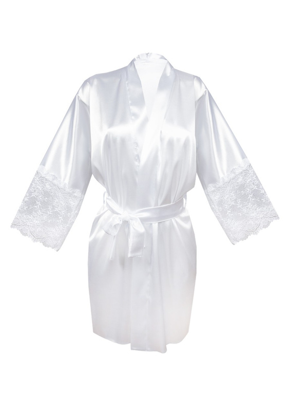 - Cudowny, satynowy szlafroczek od marki Dkaren. Pięknie układa się na ciele. Niesamowicie podkreśla talię. Rękawki przeszyte koronką aby wydobyć maksimum kobiecości.