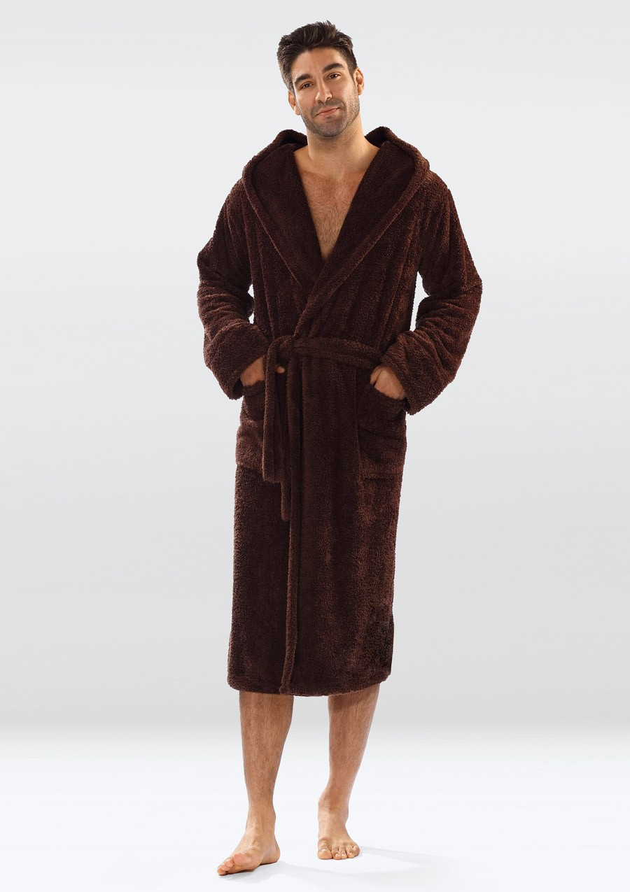 Puchaty szlafrok/ podomka męska z kapturem 130 czekolada- Dkaren