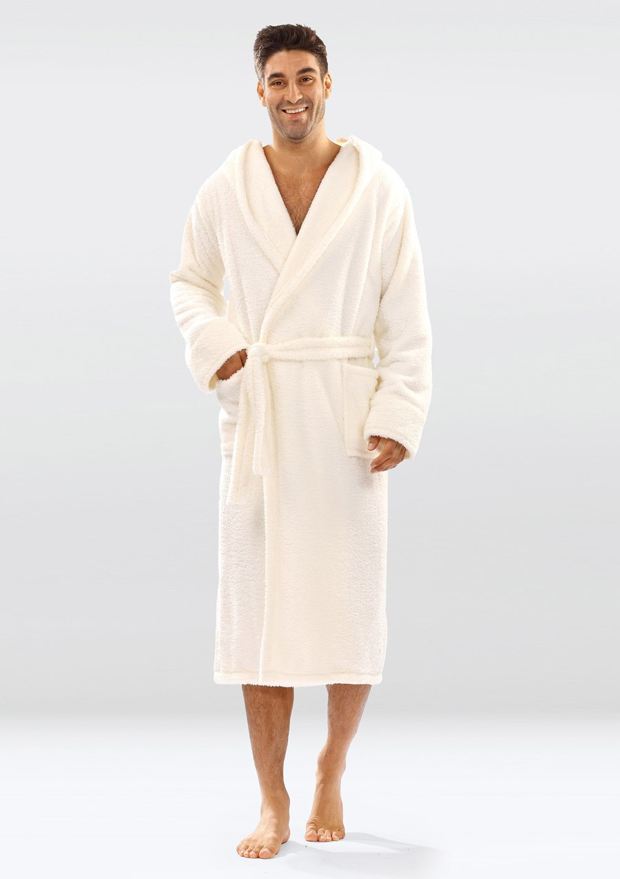 Puchaty szlafrok/ podomka męska z kapturem 130 ecru- Dkaren
