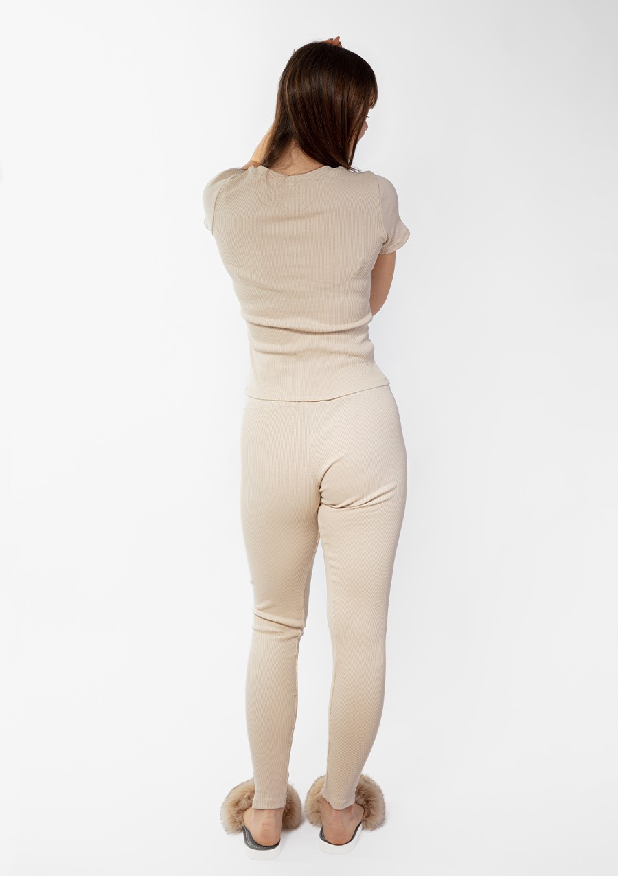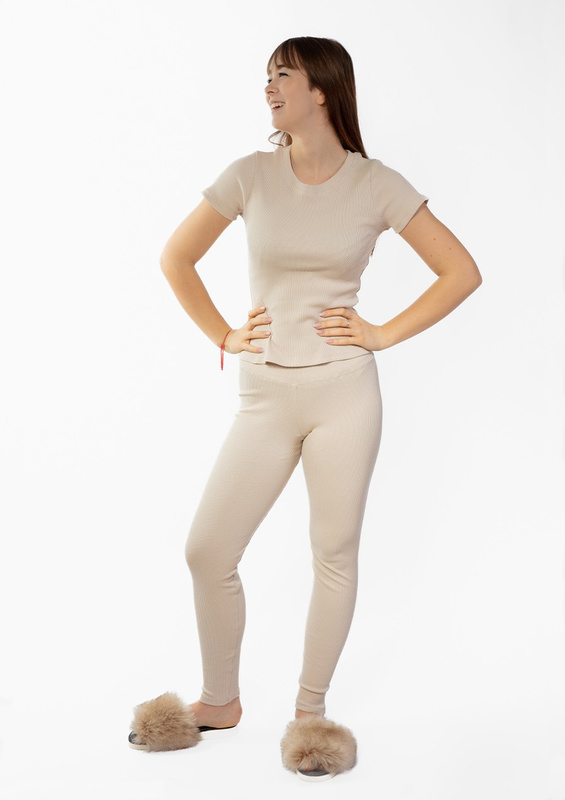 Wprowadź do swojej szafy modny komplet Halima w prążki od Dkaren. Nasz komplet w prążki jest doskonałym połączeniem modnego kroju i wygody. Nasz zestaw legginsów i koszulki w prążki to nie tylko wyraz aktualnych trendów, ale również manifestacja komfortu, dostępnego zarówno dla miłośniczek relaksu w domowym zaciszu, jak i dla aktywnych kobiet podczas treningów. Legginsy i koszulka w prążki marki Dkaren to gwarancja wyjątkowego wyglądu, który podkreśli kobiece atuty. Elastyczny materiał legginsów doskonale przylega do ciała, podkreślając jednocześnie naturalne kształty, a koszulka w prążki dodaje lekkości i stylu. Komplet Halima dostępny jest w różnorodnych kolorach, nasz komplet pozwala na dostosowanie go do własnego gustu i preferencji. Niech Twój strój odzwierciedla Twoją indywidualność, bez względu na to, czy preferujesz stonowane odcienie czy odważne kontrasty. Idealny zarówno na leniwe popołudnia w domowym zaciszu, jak i na intensywne treningi, nasz komplet w prążki marki Dkaren to synonim wygody i wszechstronności. Wybierz komfort, jakość i modny design, inwestując w komplet Halima, który podkreśli Twoją pewność siebie i sprawi, że poczujesz się świetnie w każdej sytuacji. Jak prać i prasować? Taki materiał najlepiej prać ręcznie w temperaturze 30°C. Proszę nie chlorować, nie czyścić chemicznie i nie wirować. Prasować w temperaturze 110°C. Skład surowcowy: 95 % bawełna 5 % elastanOdkryj wyjątkowy komfort i styl z kompletem Halima od Dkaren! Ten niezwykły zestaw, składający się z bluzki i długich spodni, to idealny wybór dla kobiet, które cenią sobie elegancję oraz wygodę na co dzień. Wykonany z wysokiej jakości bawełny w pięknym odcieniu jasnego beżu, będzie świetnym uzupełnieniem każdej garderoby.