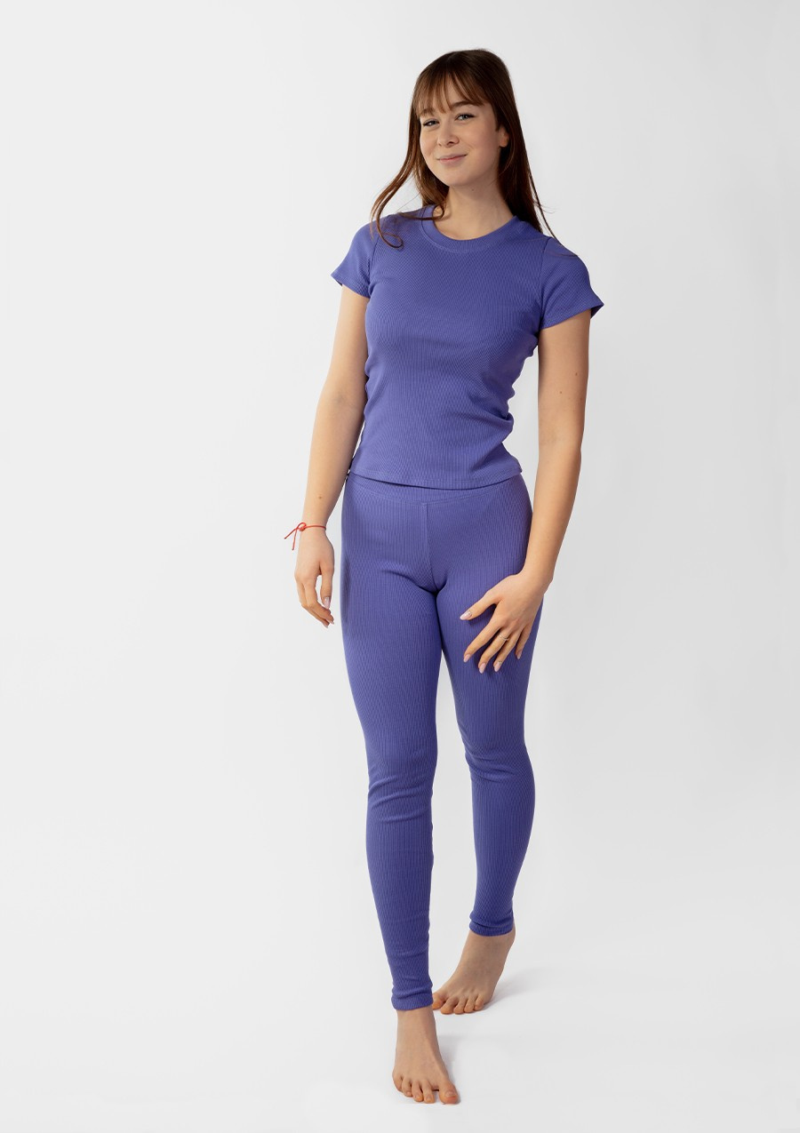 - Stylowy design – Fioletowy kolor w połączeniu z prążkowanym wzorem dodaje elegancji i klasy, czyniąc ten komplet idealnym wyborem dla każdej nowoczesnej kobiety.