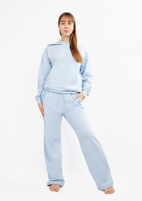 Komplet sportowy bluza z kapturem i "kangurką" oraz szerokie spodnie Dk-k-b8 - błękit bawełna - Dkaren