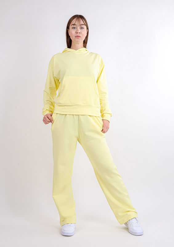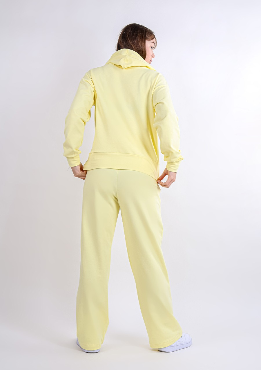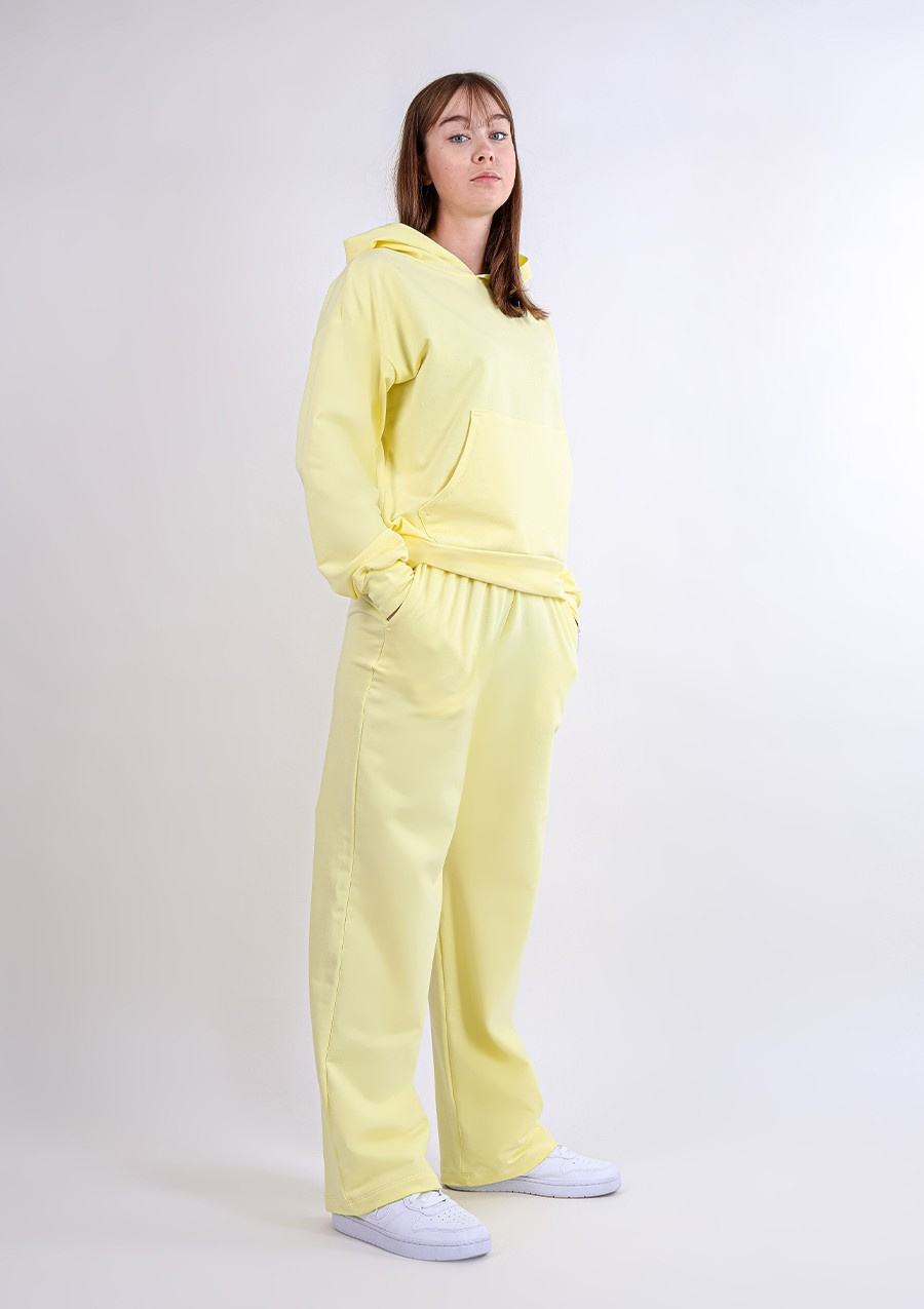 Komplet sportowy bluza z kapturem i "kangurką" oraz szerokie spodnie Dk-k-b8 - żółty bawełna - Dkaren
