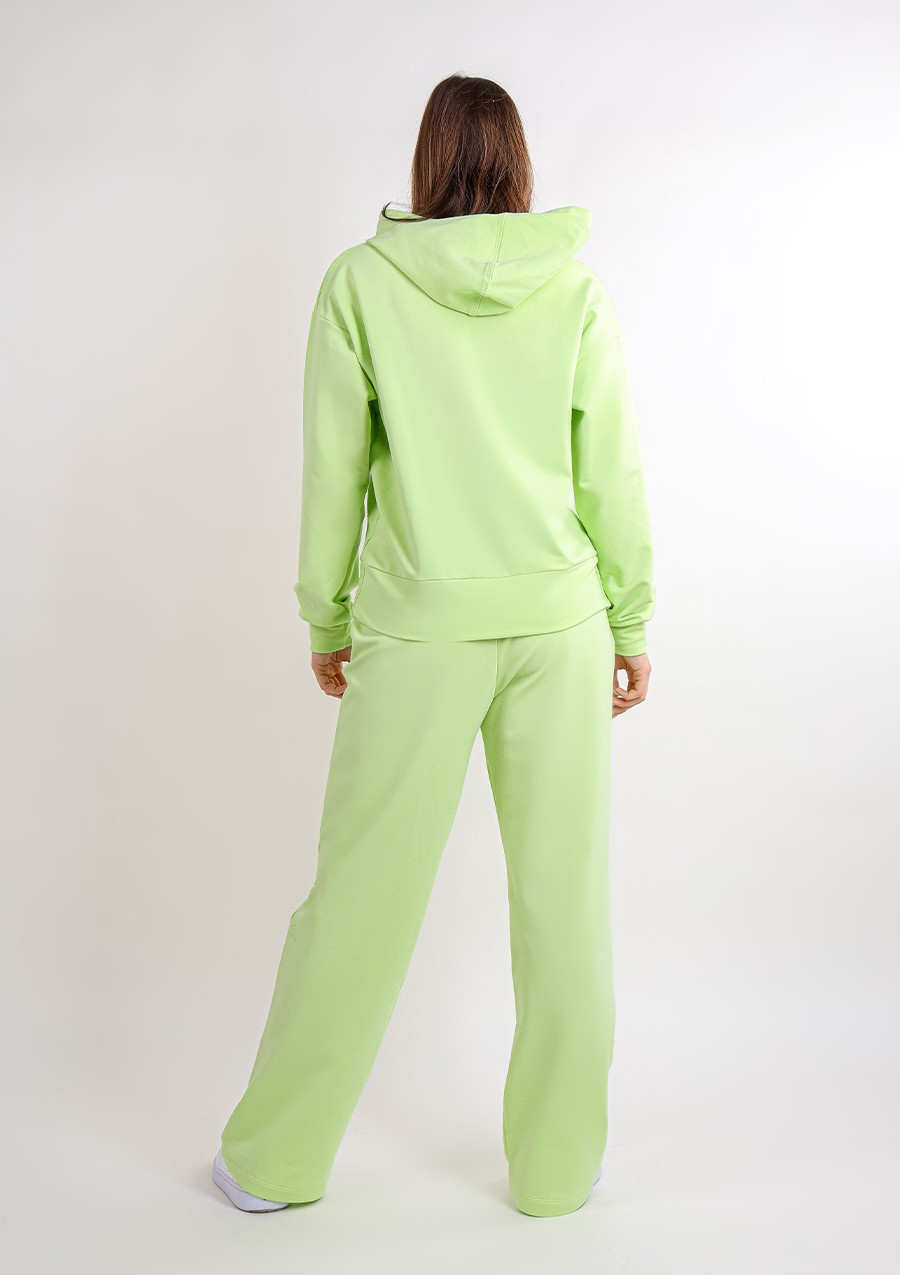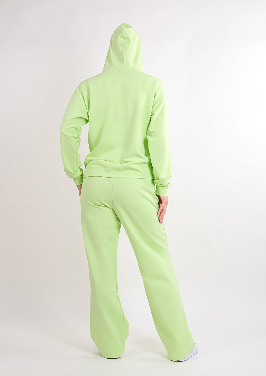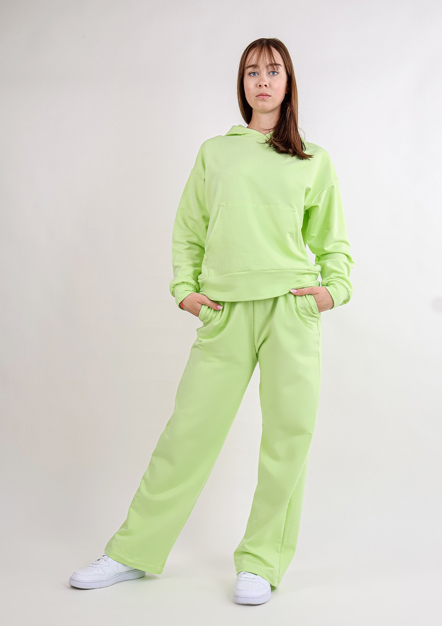 Komplet sportowy bluza z kapturem i "kangurką" oraz szerokie spodnie Dk-k-b8 - jasny zielony bawełna - Dkaren