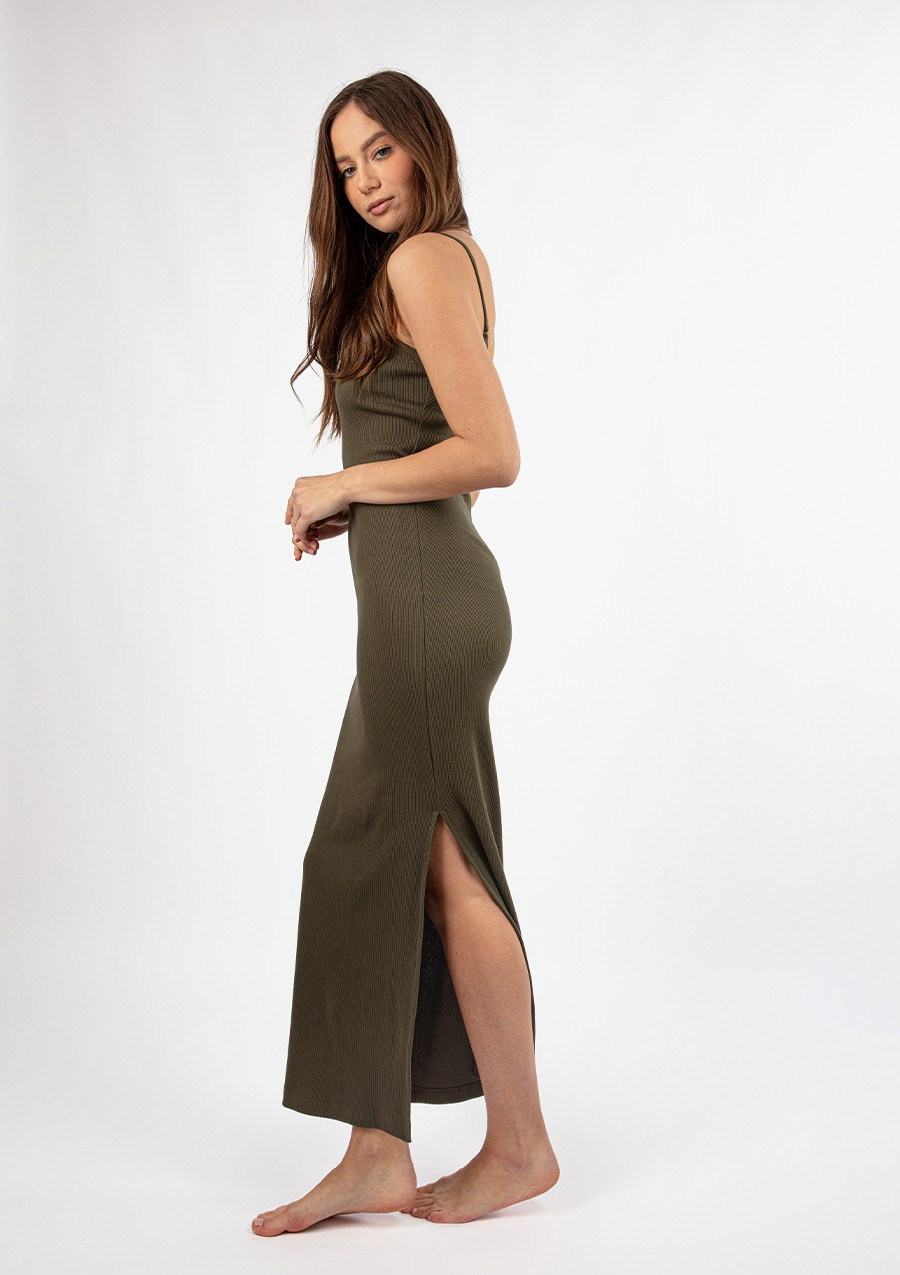 - Prosta sukienka, w kroju maxi od Dkaren ze zmysłowym rozcięciem na prawej nodze. Wysokiej jakości bawełna/prążek.