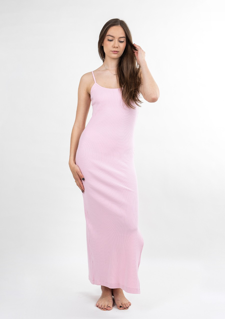 Dopasowana sukienka DK-K-P7 - jasny róż bawełna prążki - Dkaren