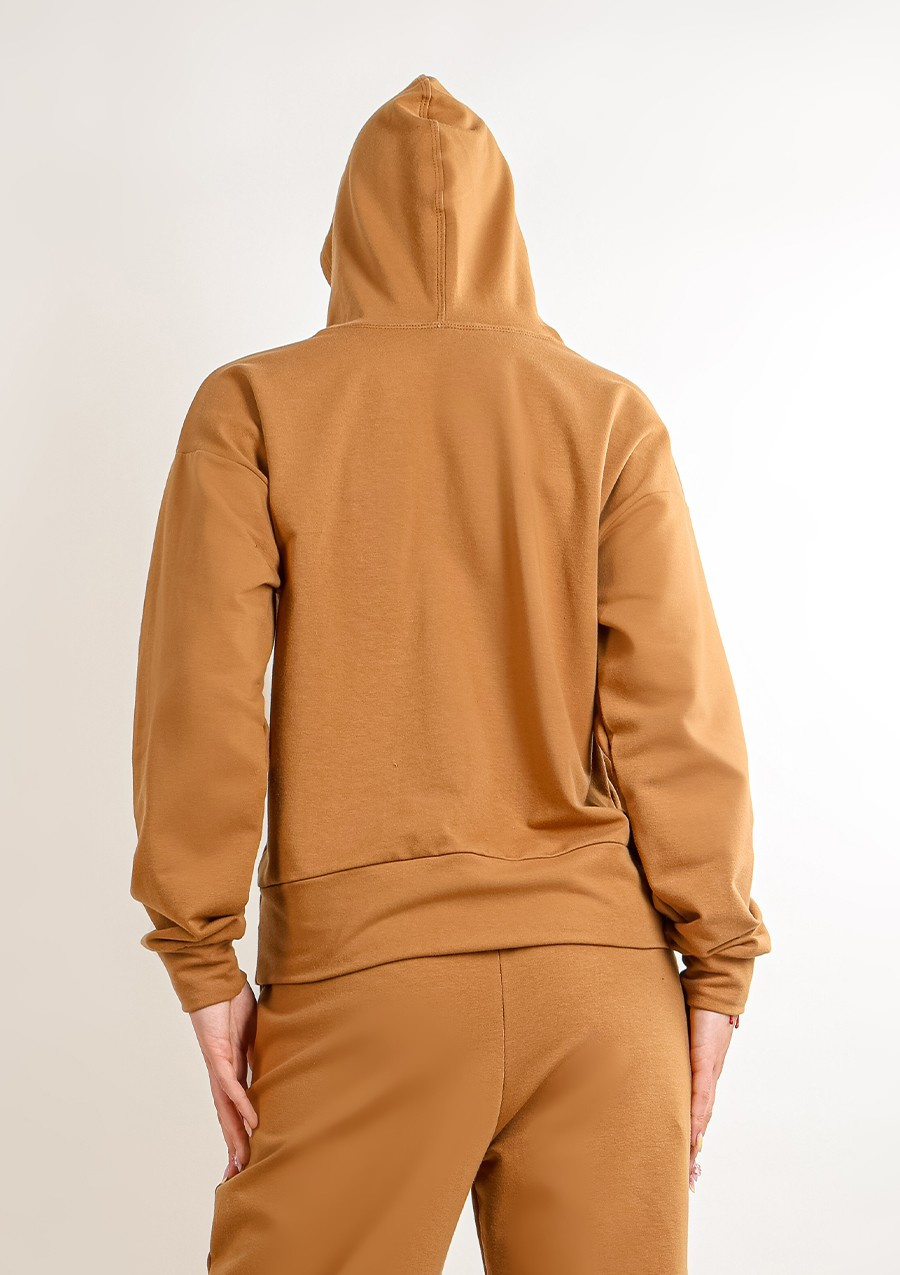 Modna bluza z kapturem DK-K-B8 - brąz bawełna - Dkaren