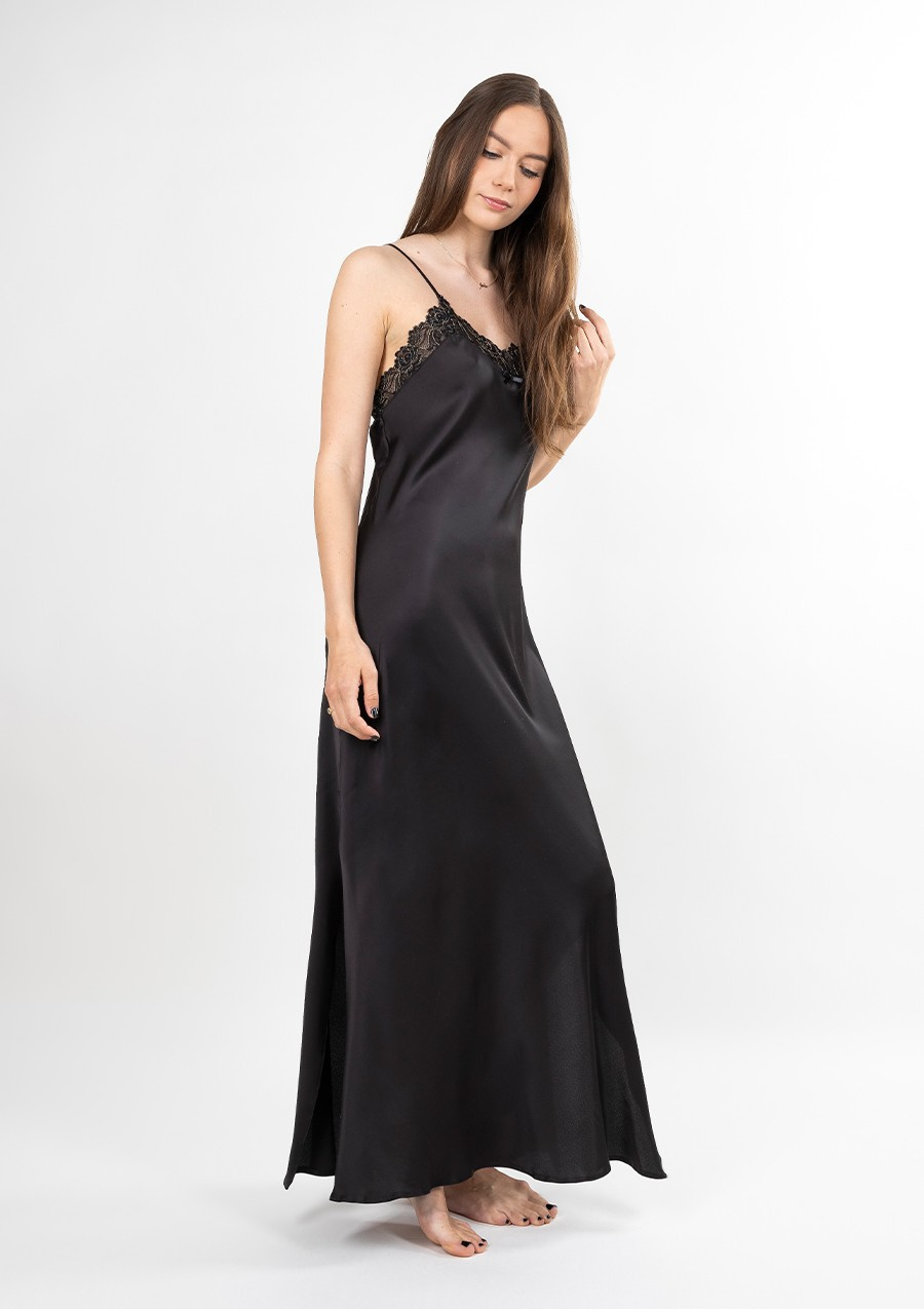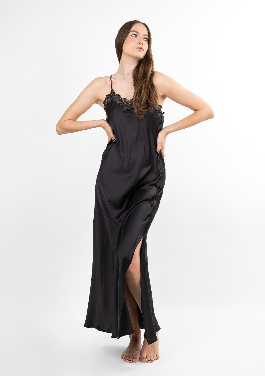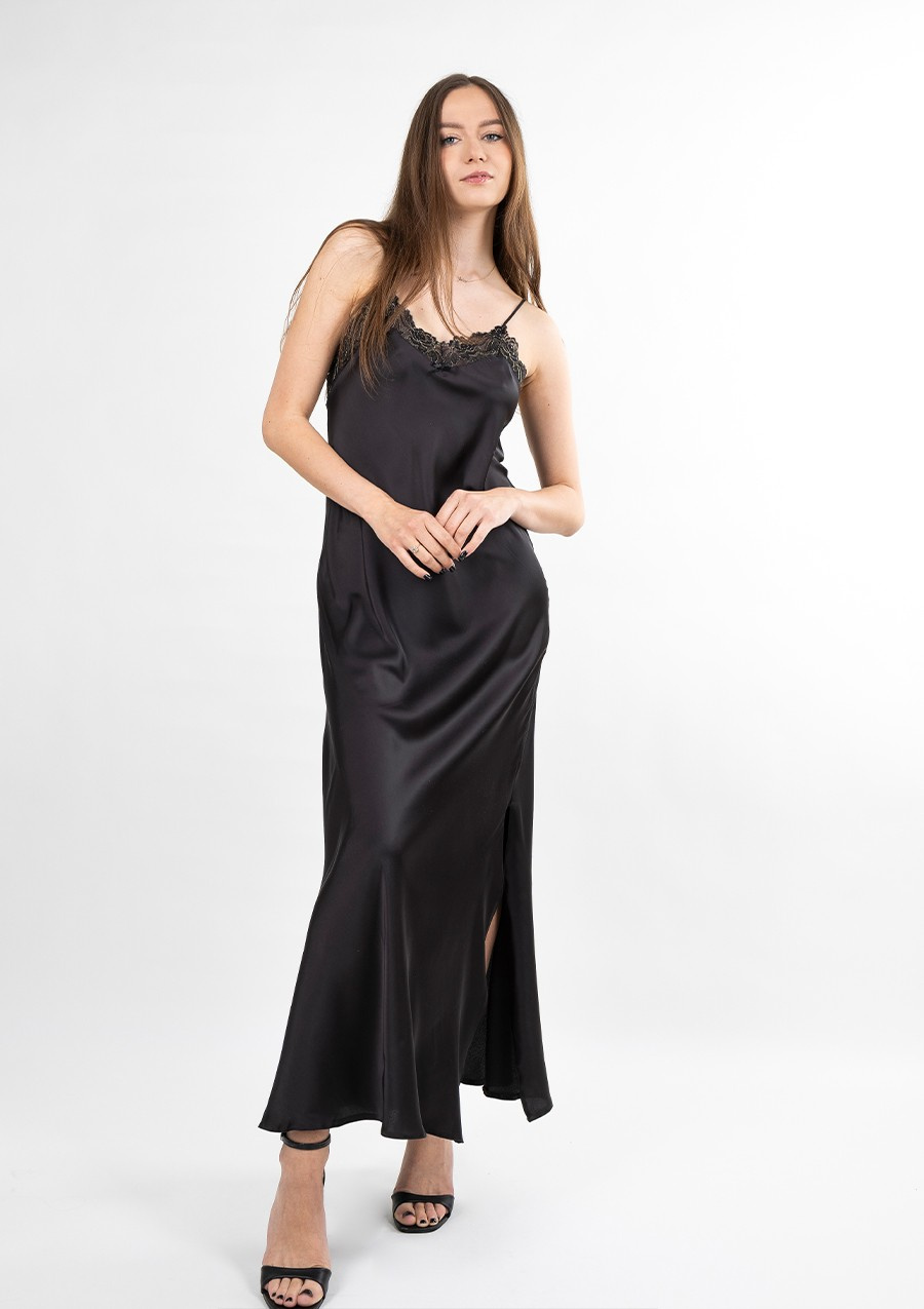 - Długa, niezwykle elegancka halka RUT od Dkaren. Wykonana z wysokogatunkowej satyny. Lekka, miękka oraz wygodna w noszeniu. Biust wykończony czarną koronką ze złotą niteczką.